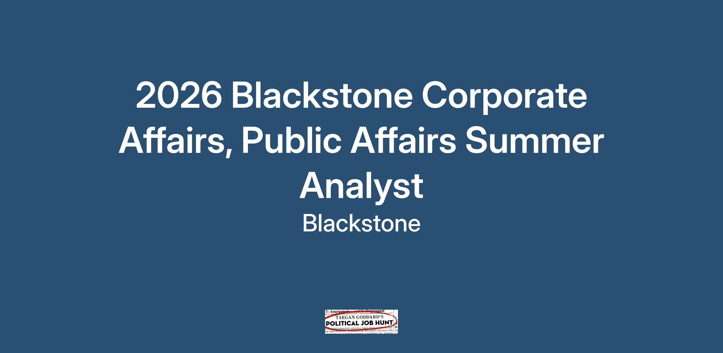The Public Affairs Summer Analyst will work across the Public Affairs group, providing strategic insight to all of Blackstone’s businesses, including private equity, real estate, credit and insurance, life sciences, growth equity, and infrastructure, among others.