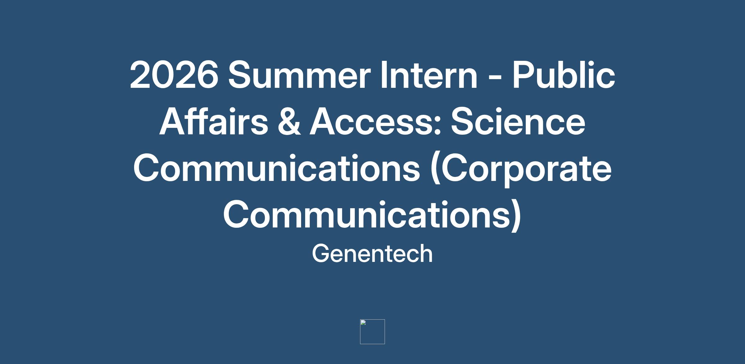2026 Summer Intern - Public Affairs & Access: Science Communications (Corporate Communications)