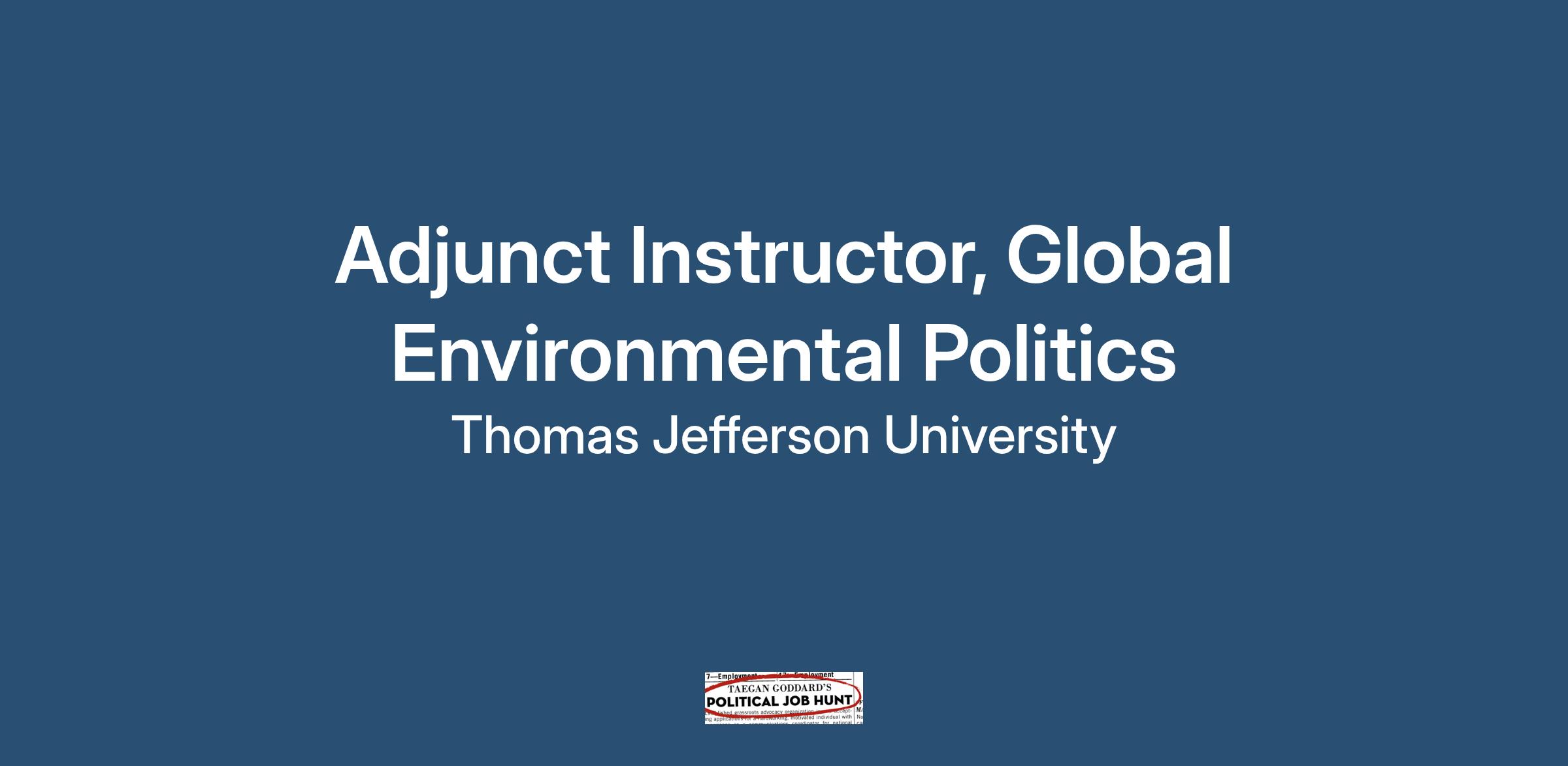 Adjunct instructor qualified to teach "Global Environmental Citizenship,” an introductory general education course on key issues in global environmental politics.Job Description