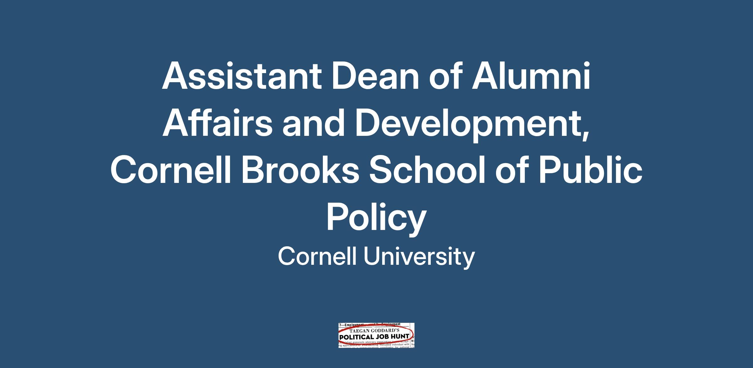 Cornell University seeks an experienced advancement professional for the role of Assistant Dean of Alumni Affairs and Development, located in Ithaca, NY. This role supports the Cornell Jeb E. Brooks School of Public Policy and presents an exceptional opportunity to contribute to the university's advancement efforts.