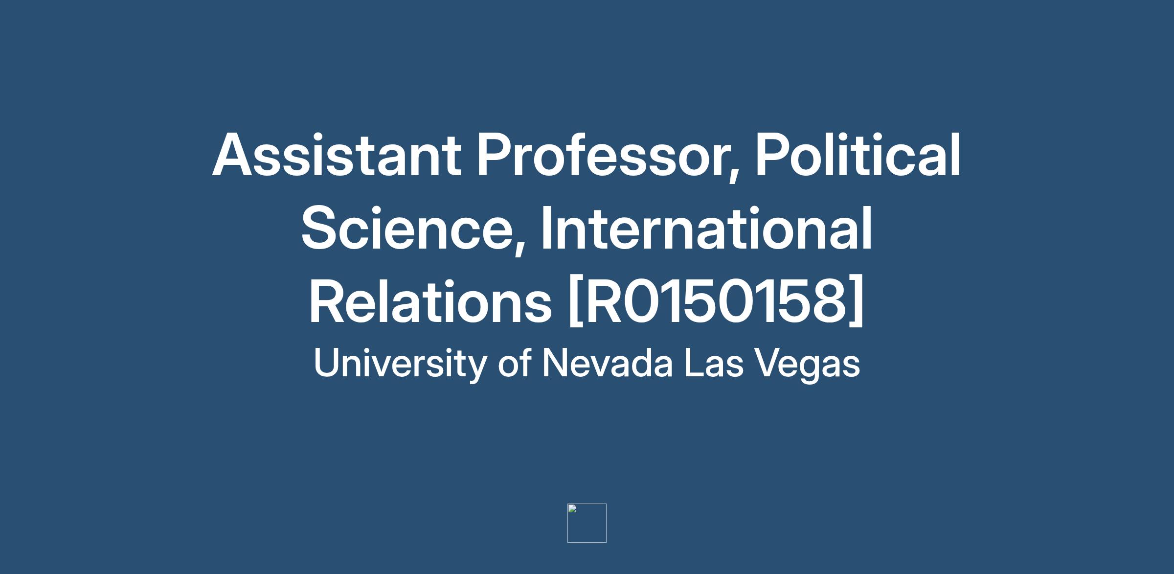The University of Nevada, Las Vegas invites applications for Assistant Professor, Political Science, International Relations [R0150158]