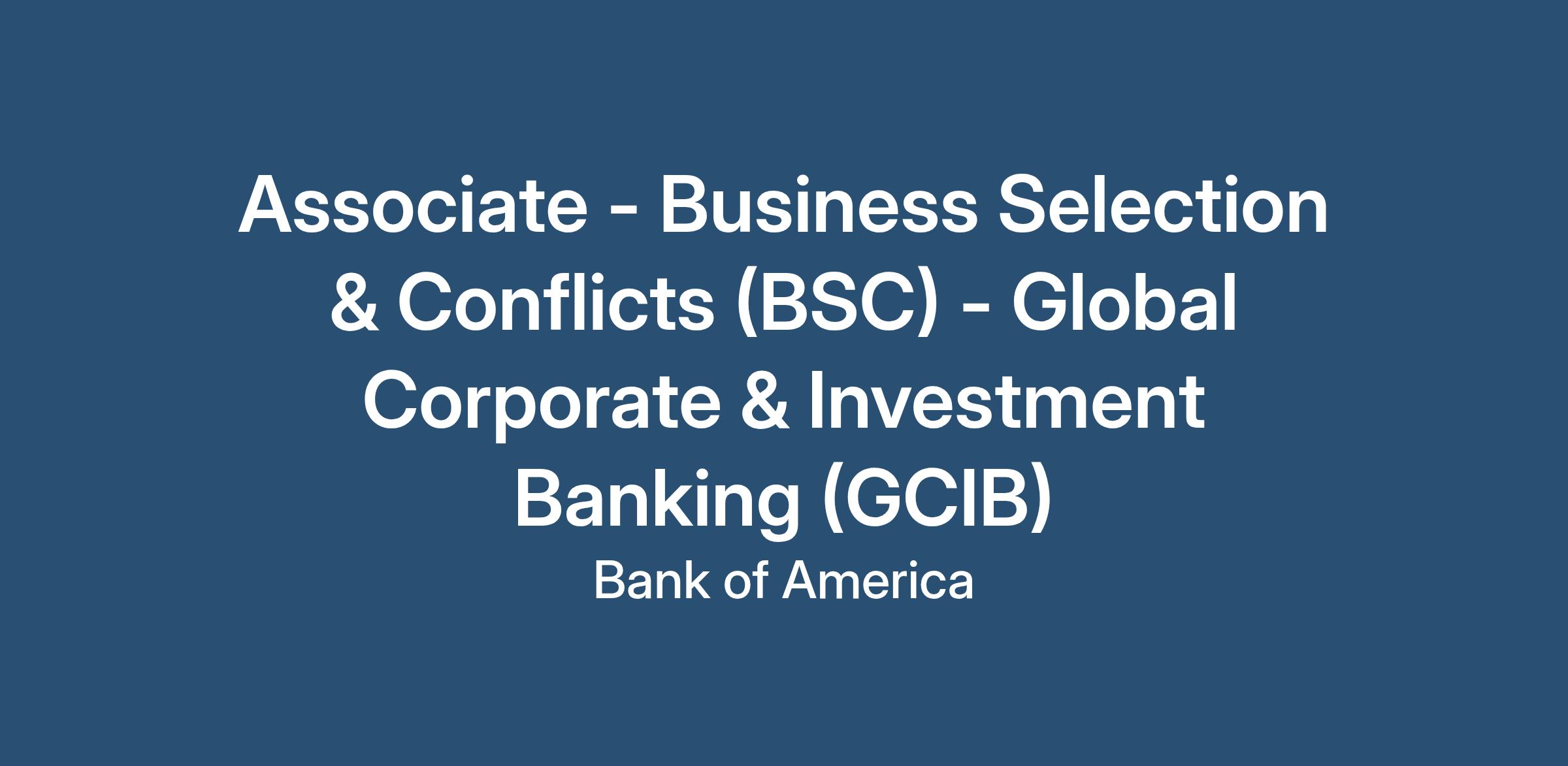 The Business Selection & Conflicts Group (BSC) is the first point of contact within Investment Banking on potential new business opportunities as well as queries regarding ongoing transactions. BSC clears all new potential business mandates to confirm potential conflicts of interest are anticipated, identified, and managed. BSC also drives decision making on business selection issues to ensure the firm is committing to the most attractive opportunities.