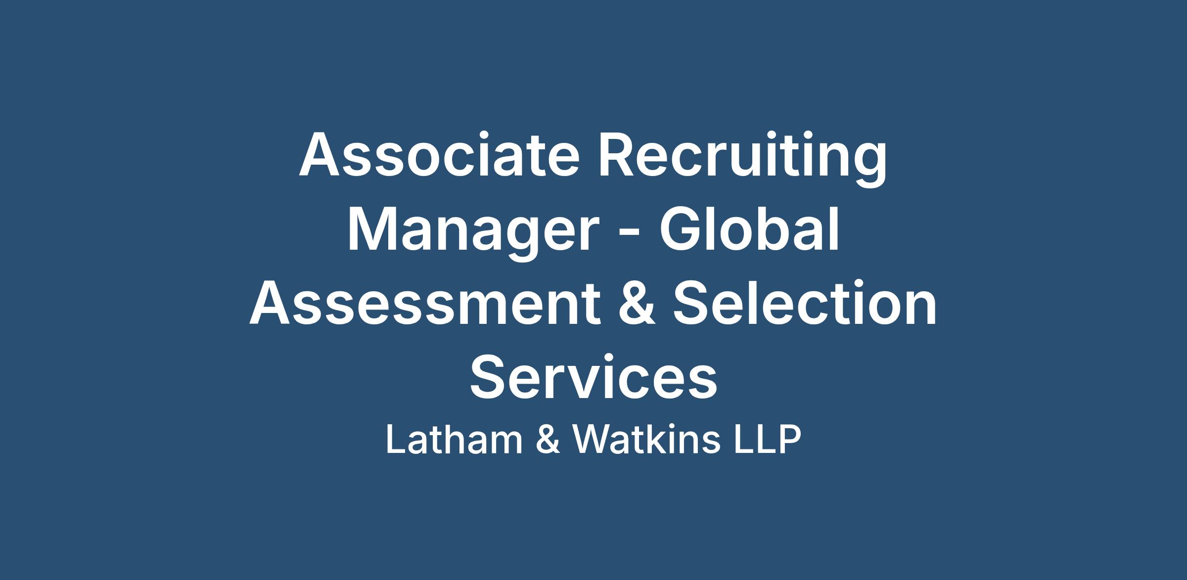 The Associate Recruiting Manager – Global Assessment & Selection Services is an integral part of Latham’s Associate Recruiting team. This role will be responsible for recruiting and hiring top talent for all associatelevel positions at Latham & Watkins, while leading the global strategy for associate assessment and selection, including the design, evaluation, and ongoing evolution of assessment frameworks and methodologies across both entrylevel and lateral hiring. This role will be located in either our New York or Washington D.C. office. Please note that this role may be eligible for a flexible working schedule that allows for a hybrid and in-office presence.