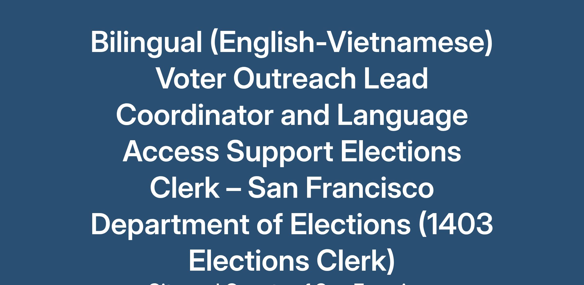 Bilingual (English-Vietnamese) Voter Outreach Lead Coordinator and Language Access Support Elections Clerk – San Francisco Department of Elections (1403 Elections Clerk)