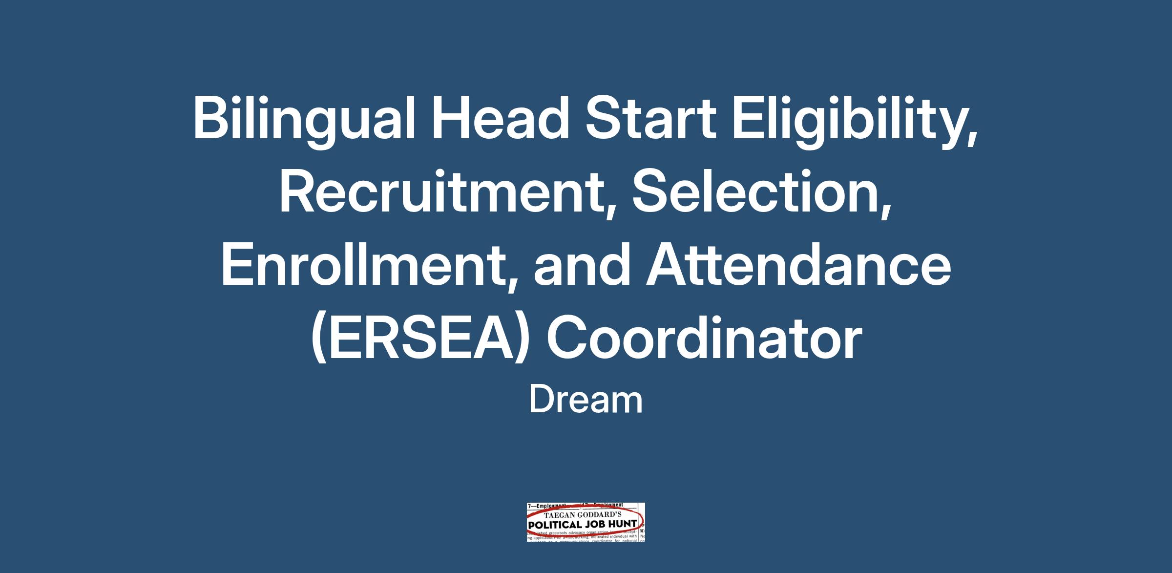 Reporting to the Senior Manager of Family Services and Health, the ERSEA Coordinator serves as the lead for overseeing and monitoring Head Start ERSEA; Eligibility, Recruitment, Selection, Enrollment & Attendance. The ERSEA Coordinator will work collaboratively with Family Engagement/Health Leadership and Family Advocates to assure the execution of high quality ERSEA systems and policies that are in full compliance with Head Start Performance Standards and DREAM policies and procedures. The ERSEA Coordinator assures that our program is fully enrolled, reaches Head Start eligible children and families in our communities, maintains high levels of attendance and delivers the highest level of customer experience to our families throughout the recruitment, application and enrollment process.