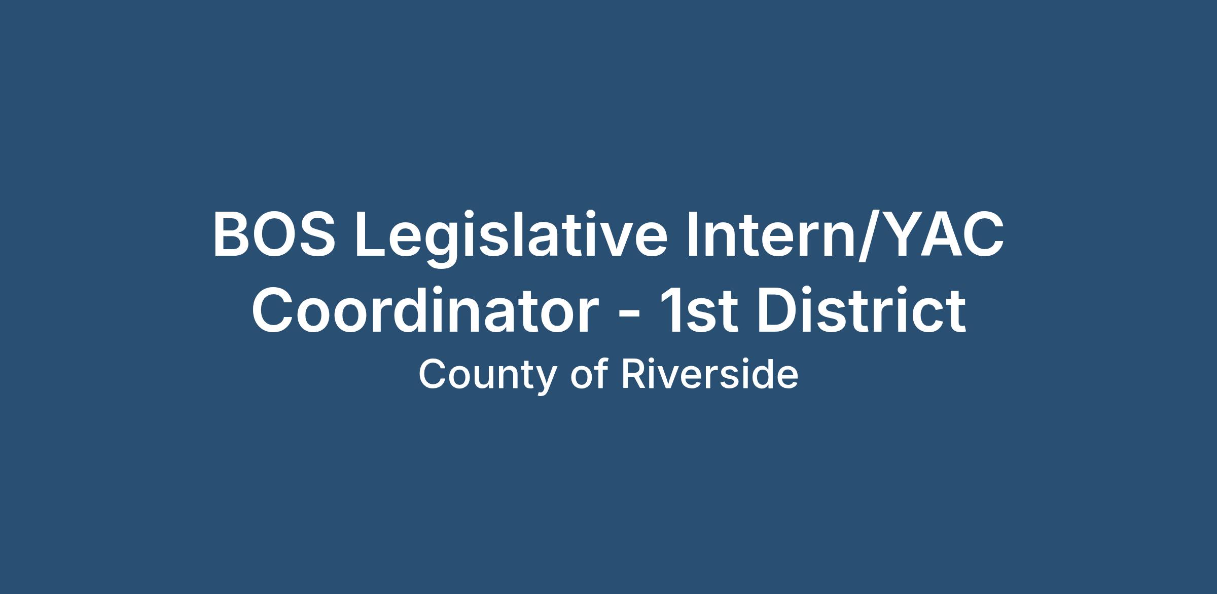 The County of Riverside's Board of Supervisor's is currently seeking a paid Legislative Intern/ Youth Advisory Council (YAC) Coordinator. The in-person student internship position is based in Riverside County and offers a flexible work week consisting of approximately 20 hours per week, with flexibility granted around academic obligations. The selected candidate can anticipate the internship to be two years in length.
