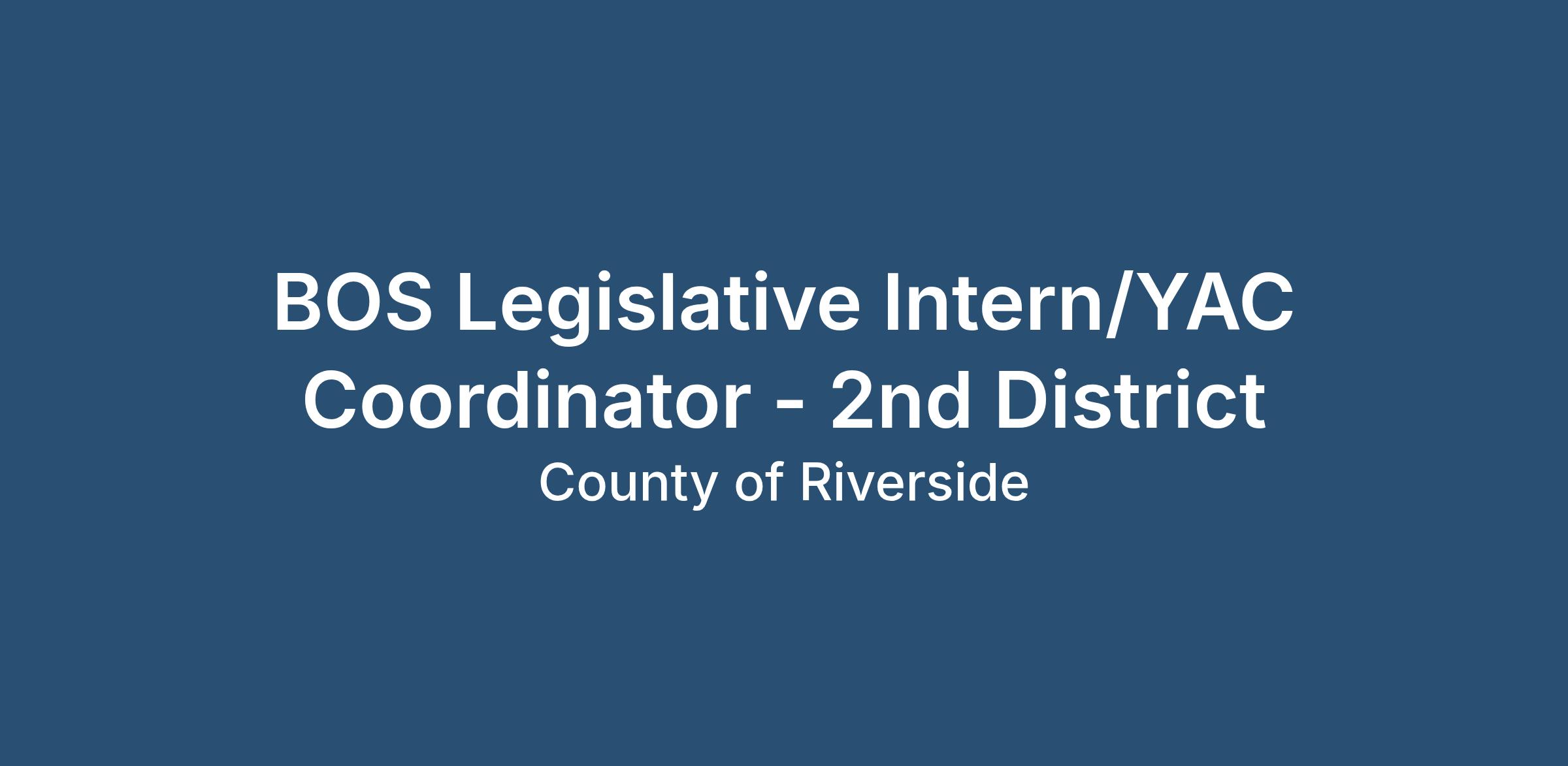 The County of Riverside's Board of Supervisor's is currently seeking a paid Legislative Intern/ Youth Advisory Council (YAC) Coordinator. The in-person student internship position is based in Riverside County and offers a flexible work week consisting of approximately 20 hours per week, with flexibility granted around academic obligations. The selected candidate can anticipate the internship to be two years in length.