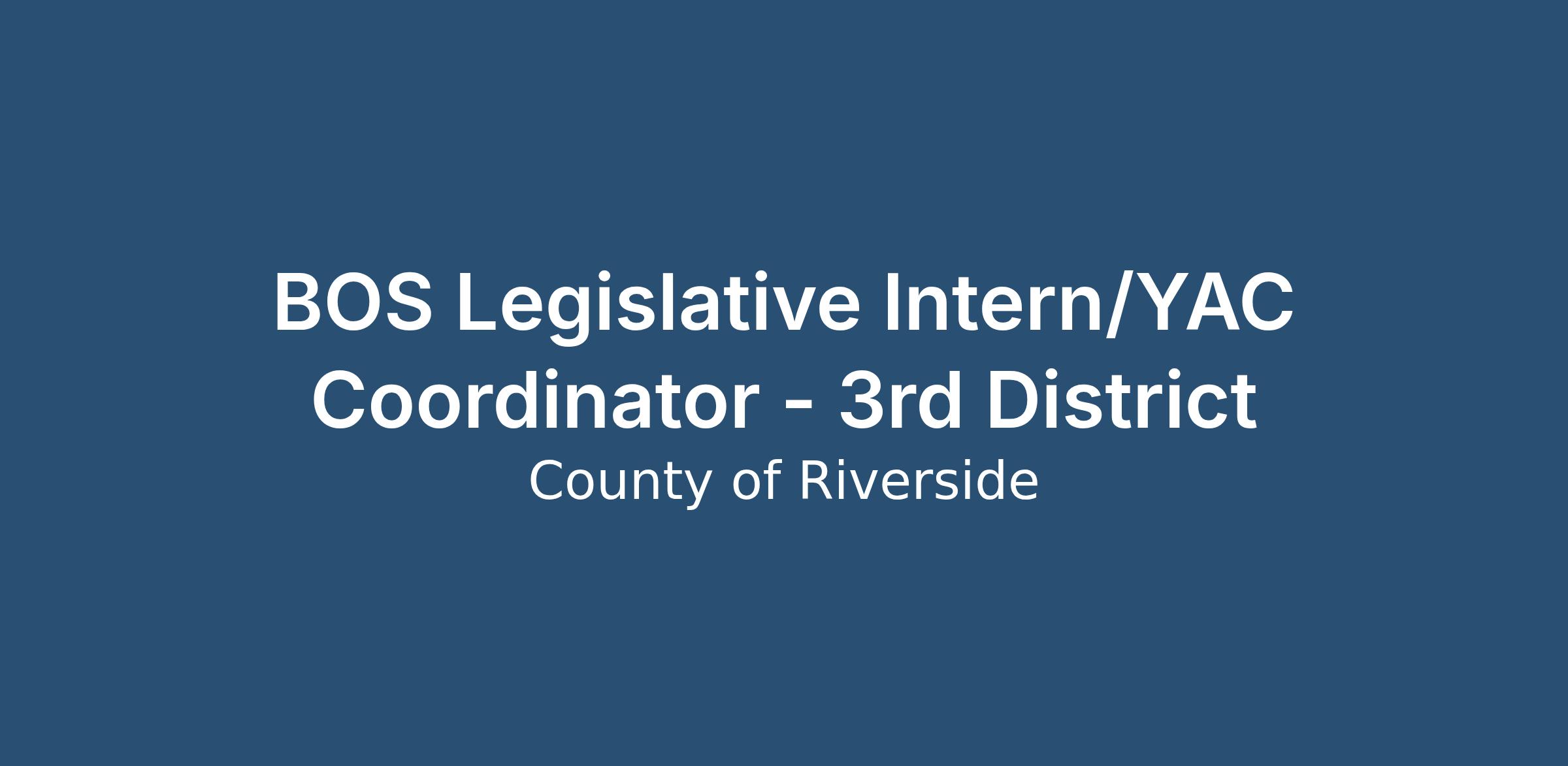 The County of Riverside's Board of Supervisor's is currently seeking a paid Legislative Intern/ Youth Advisory Council (YAC) Coordinator. The in-person student internship position is based in Riverside County and offers a flexible work week consisting of approximately 20 hours per week, with flexibility granted around academic obligations. The selected candidate can anticipate the internship to be two years in length.