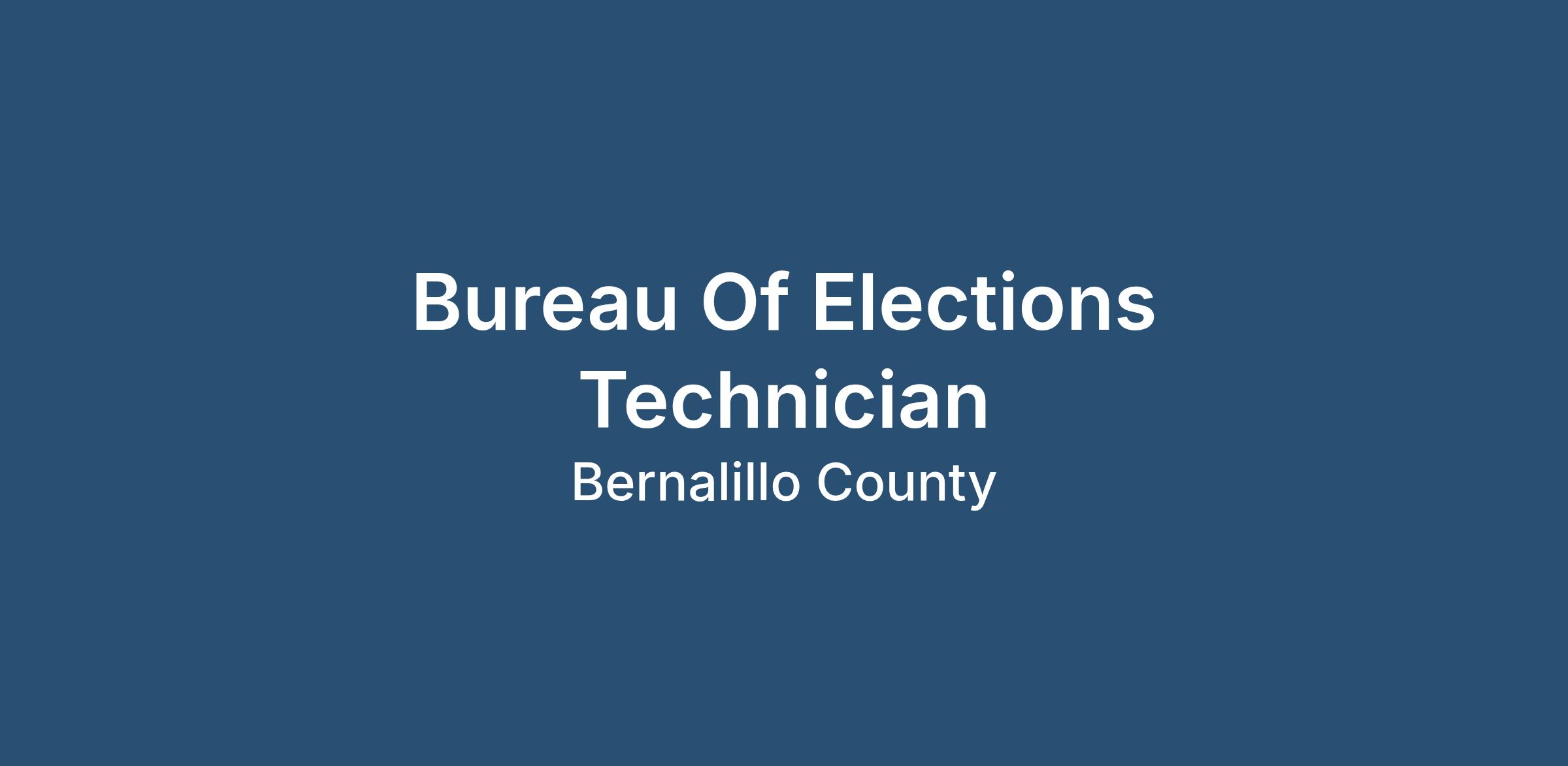 Bureau Of Elections TechnicianDepartment: