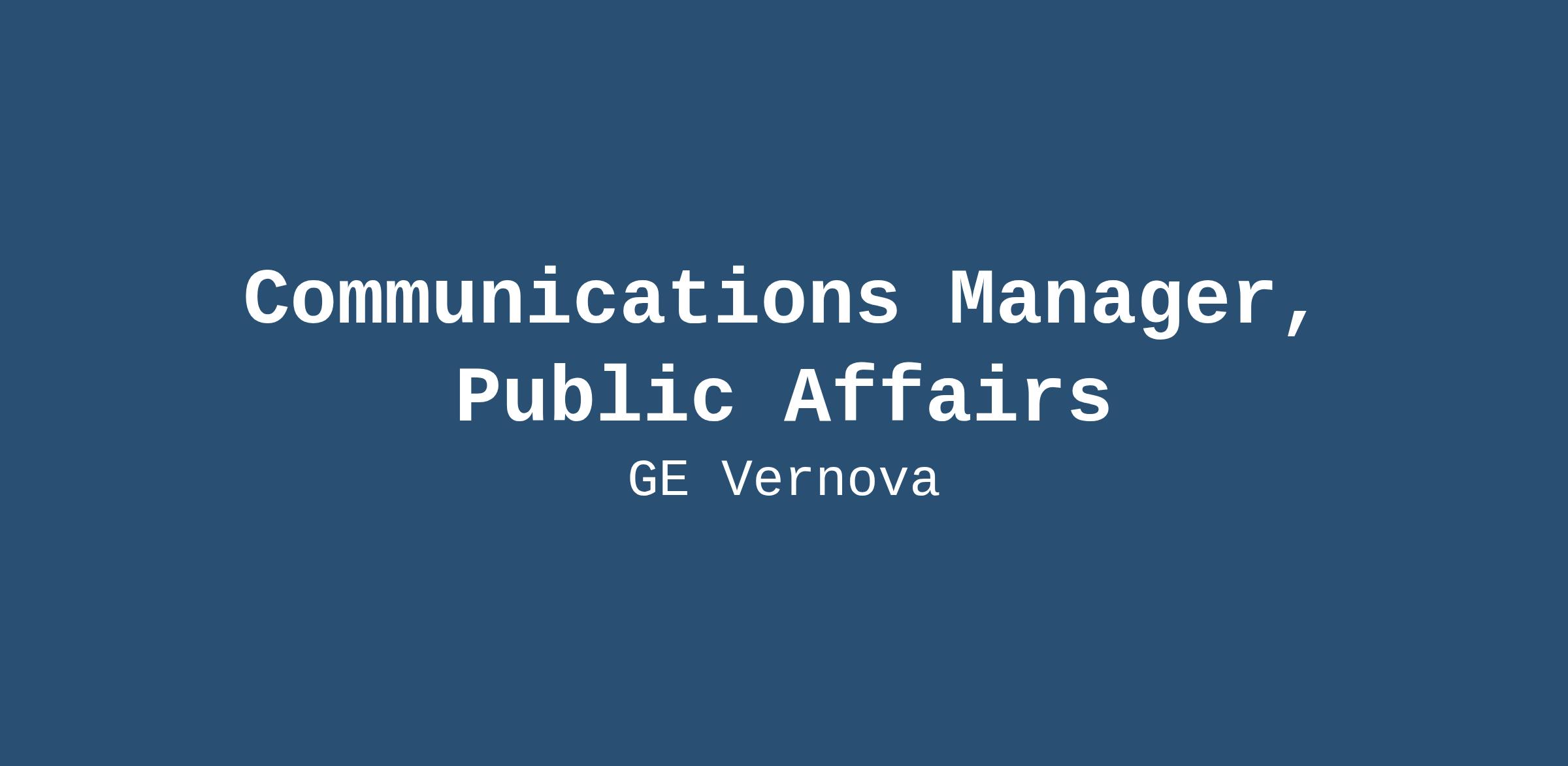GE Vernova’s Public Affairs team is seeking a dynamic and strategic Communications Manager to lead storytelling and engagement around the company’s sustainability and policy priorities. This role will be central to shaping how GE Vernova communicates its leadership in electrification, decarbonization, technology innovation, and responsible business practices—internally, with policymakers, and across external stakeholders.