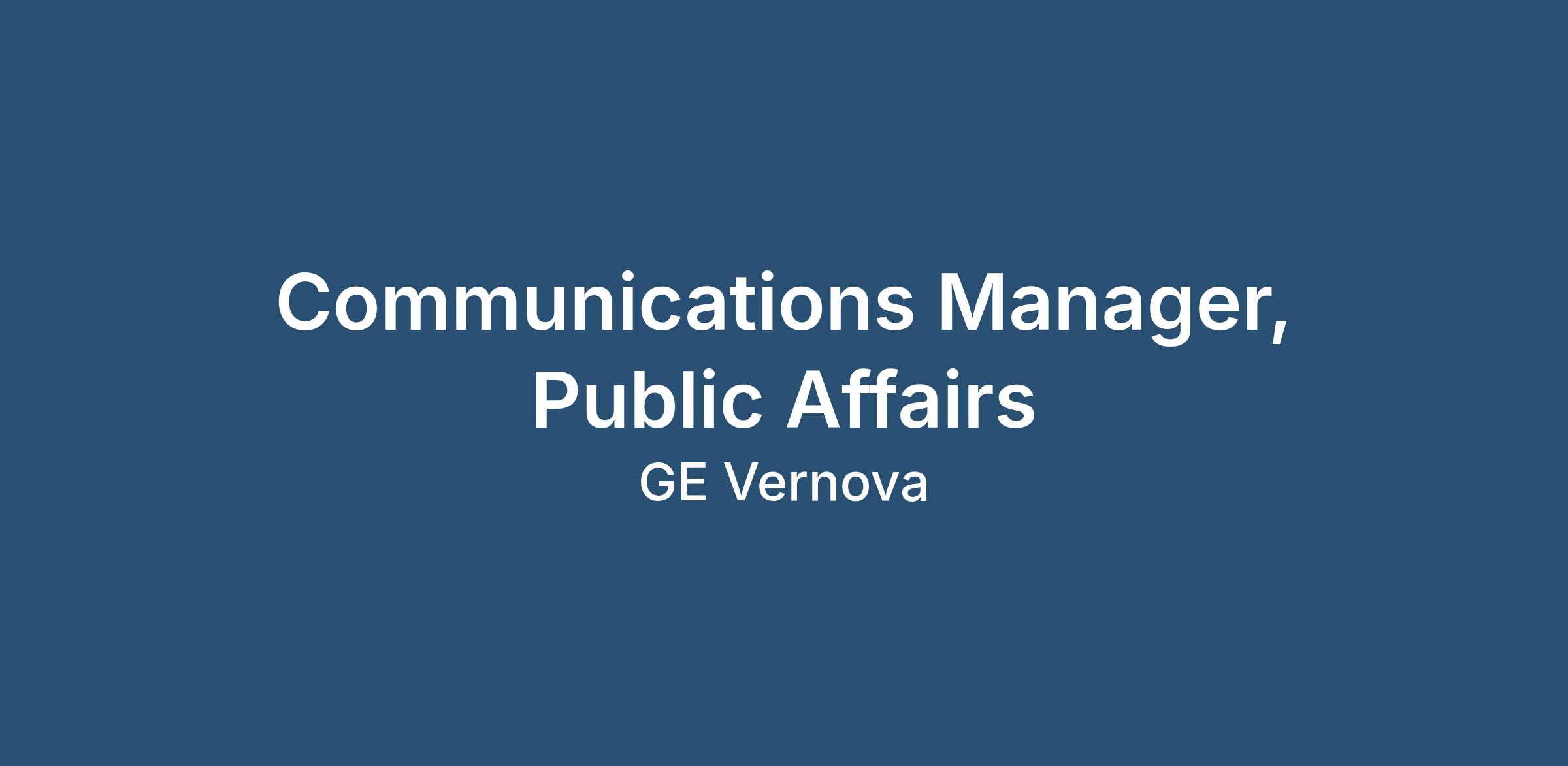 GE Vernova’s Public Affairs team is seeking a dynamic and strategic Communications Manager to lead storytelling and engagement around the company’s sustainability and policy priorities. This role will be central to shaping how GE Vernova communicates its leadership in electrification, decarbonization, technology innovation, and responsible business practices—internally, with policymakers, and across external stakeholders.