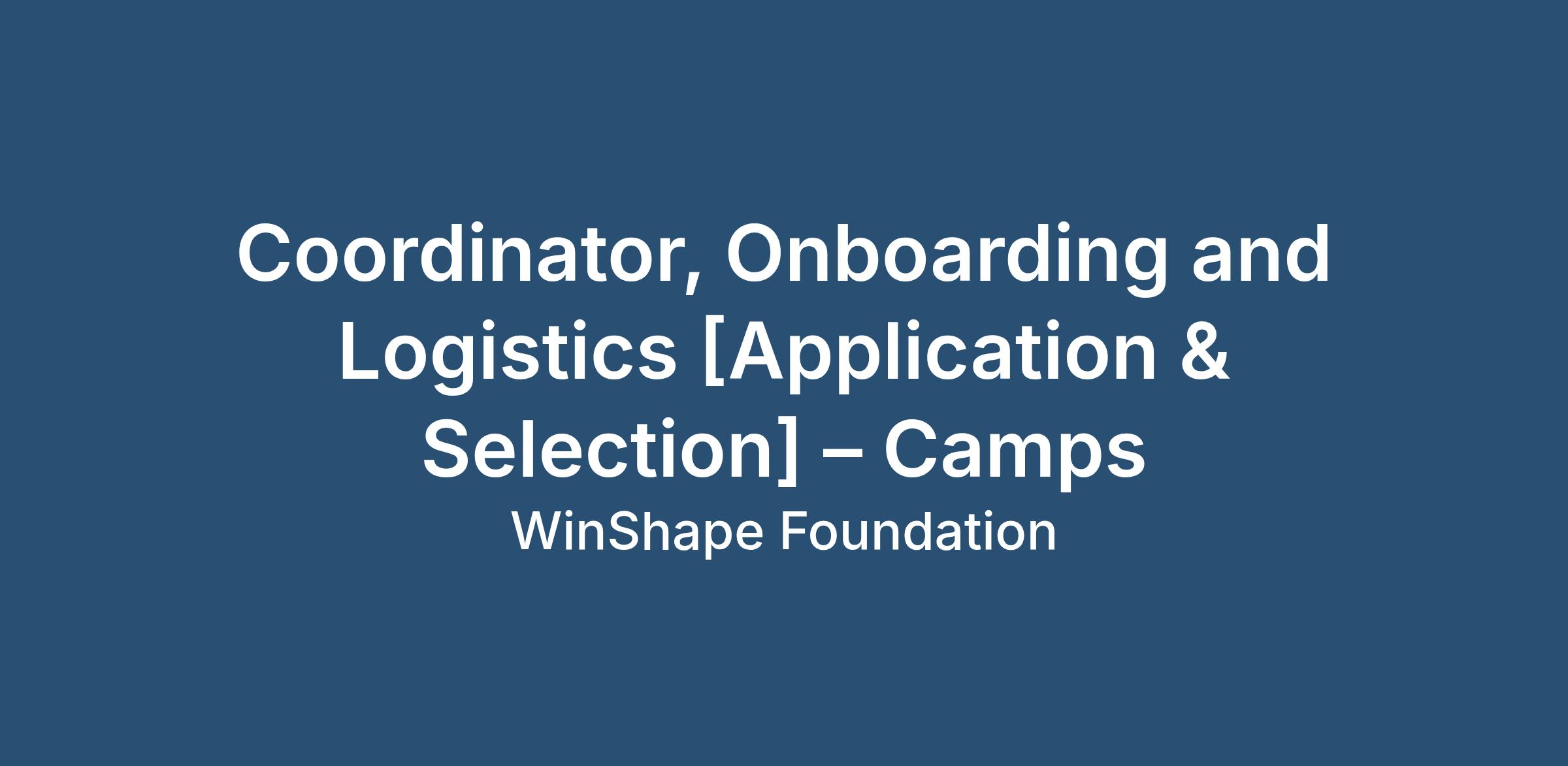 Reports to: Team Leader, Onboarding and Logistics - Camps