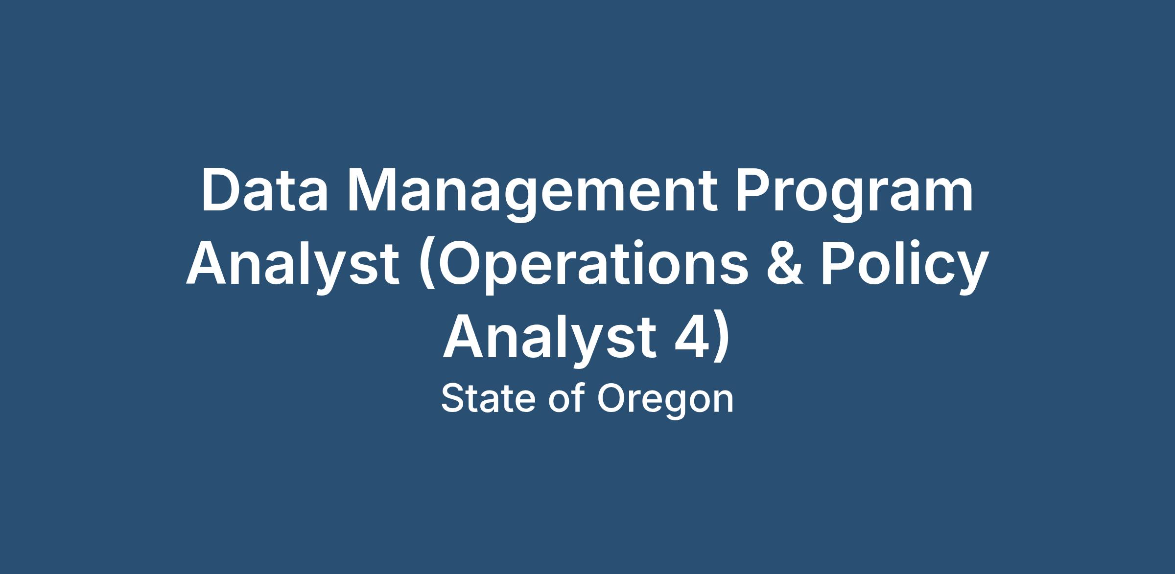 Data Management Program Analyst (Operations & Policy Analyst 4)Job Description: