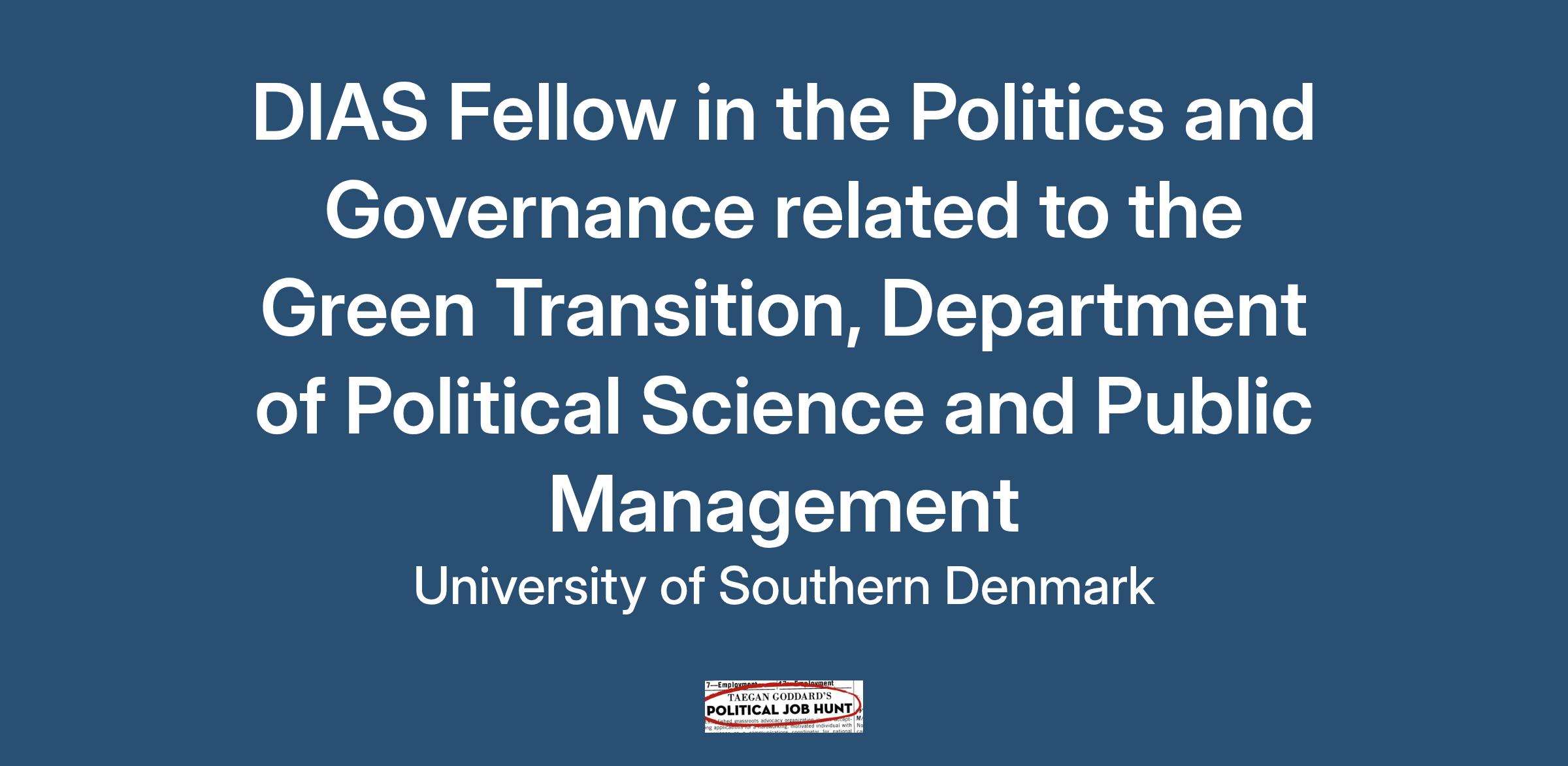 The Danish Institute for Advanced Study (DIAS) and the Department of Political Science and Public Management at the University of Southern Denmark (SDU), Odense, seek an outstanding candidate to fill a tenure-track Fellow (Assistant Professor level) position in the field of Political Science. The candidate is expected to start on September 1, 2026, or as soon as possible thereafter.