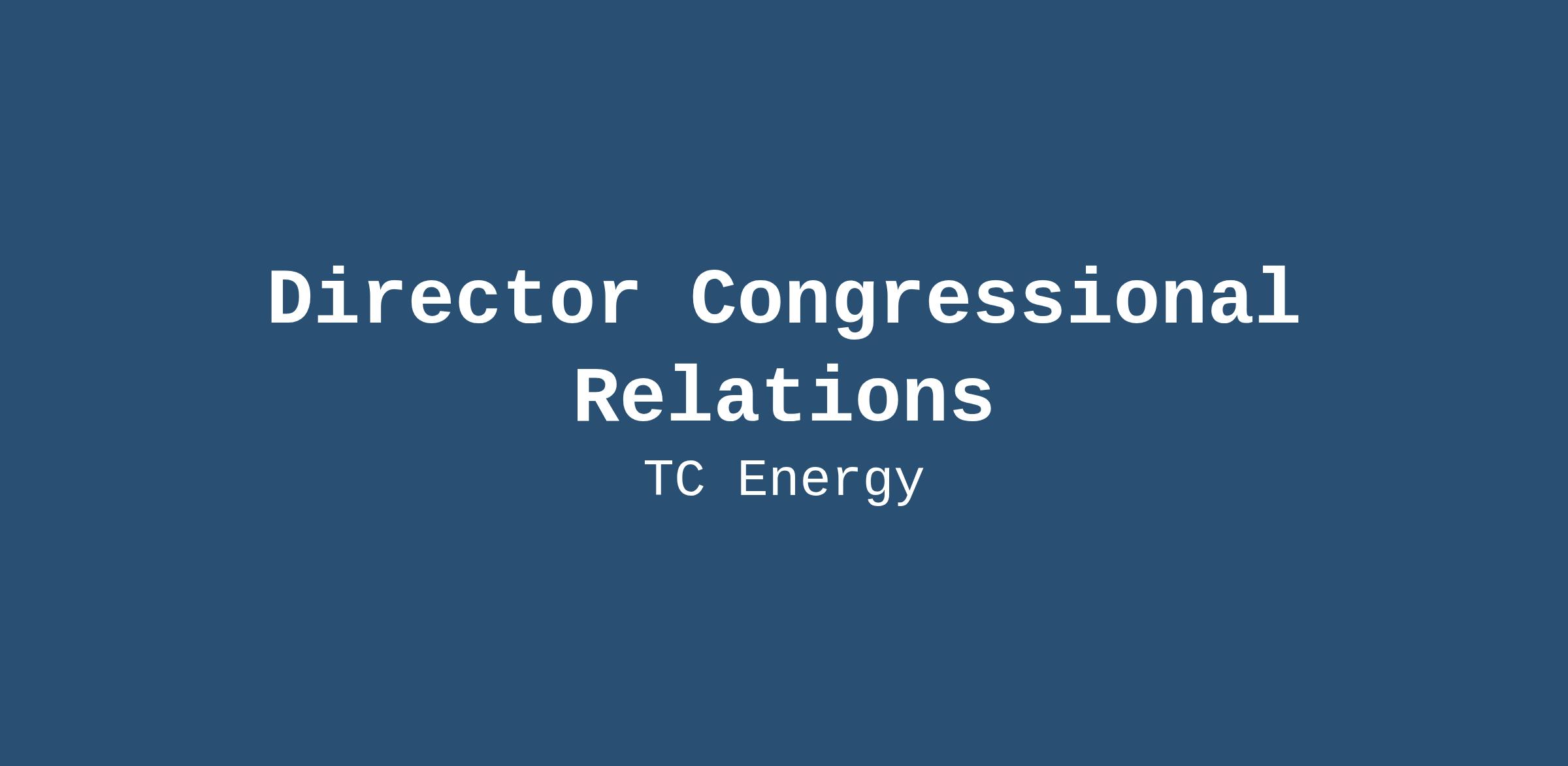 - Serve as a trusted advisor and advocate, ensuring TC Energy’s voice is heard and our interests are effectively represented on Capitol Hill.