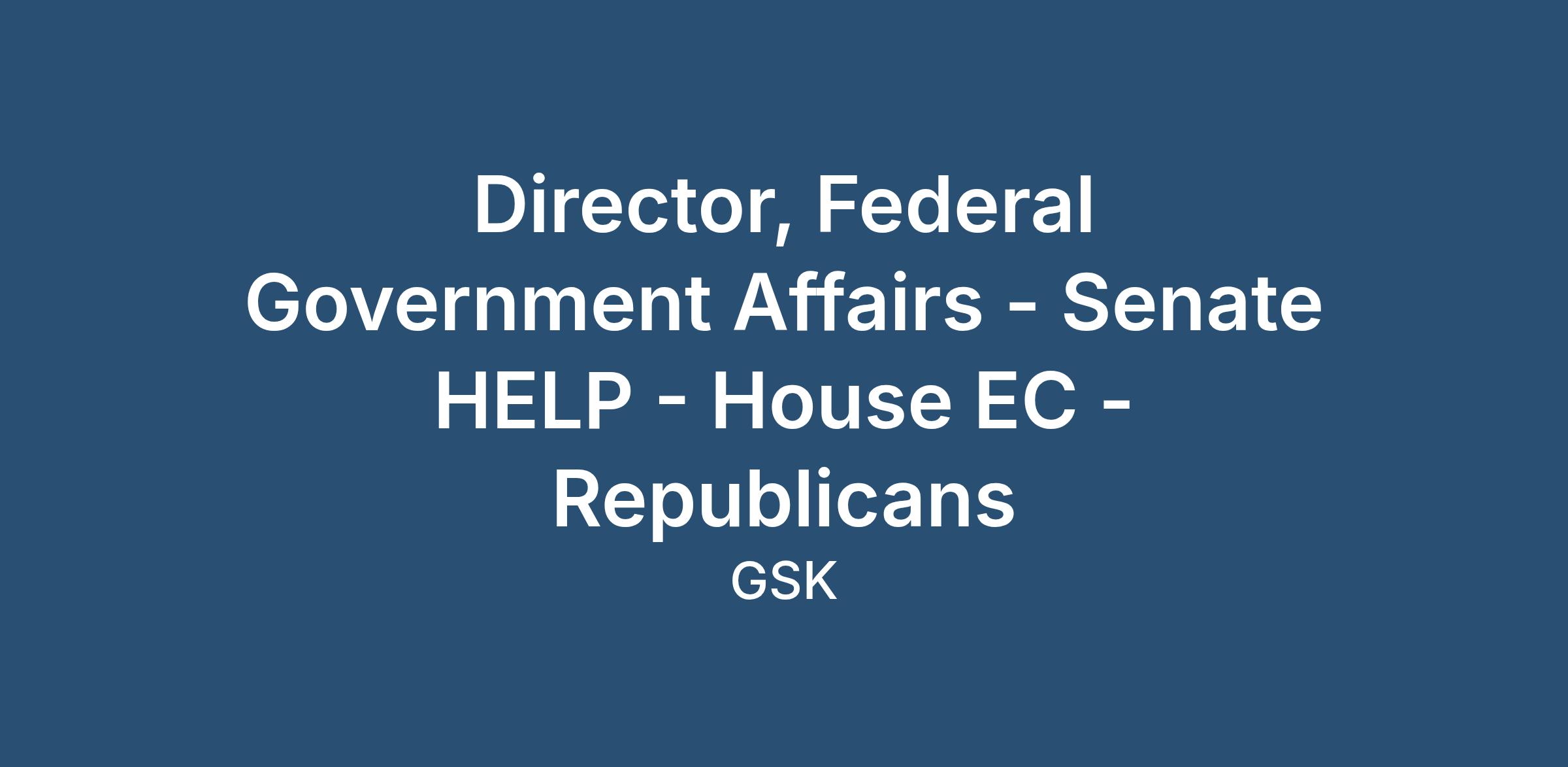 The Director, Federal Government Affairs at GSK is responsible for strategic engagement with U.S. federal policymakers and the Executive Branch to advance the company’s public policy priorities and regulatory interests. This role involves influencing legislative and regulatory outcomes, building relationships with key policymakers, developing coalitions with third-party external partners, and collaborating with cross-functional internal partners to support GSK’s mission of improving health through innovation. This pivotal role will involve direct engagement with Congress and the Executive Branch to champion GSK's priorities and advocate for critical issues within the healthcare and pharmaceutical industry.