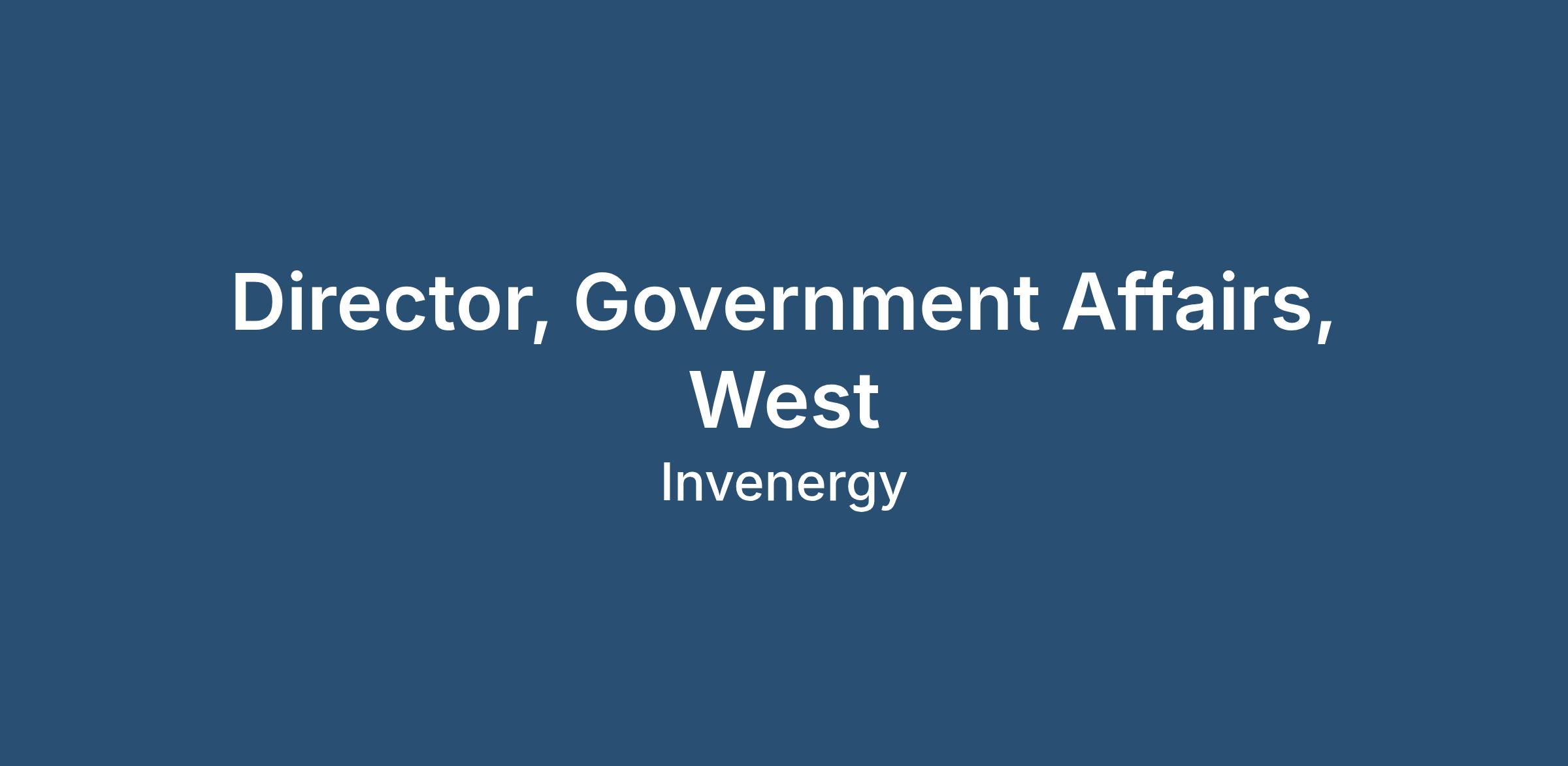 As a Director, Government Affairs – West, you will focus on Invenergy's government affairs activities, primarily in the legislative and executive branch, across western states (WECC and CAISO), and manage one direct report.