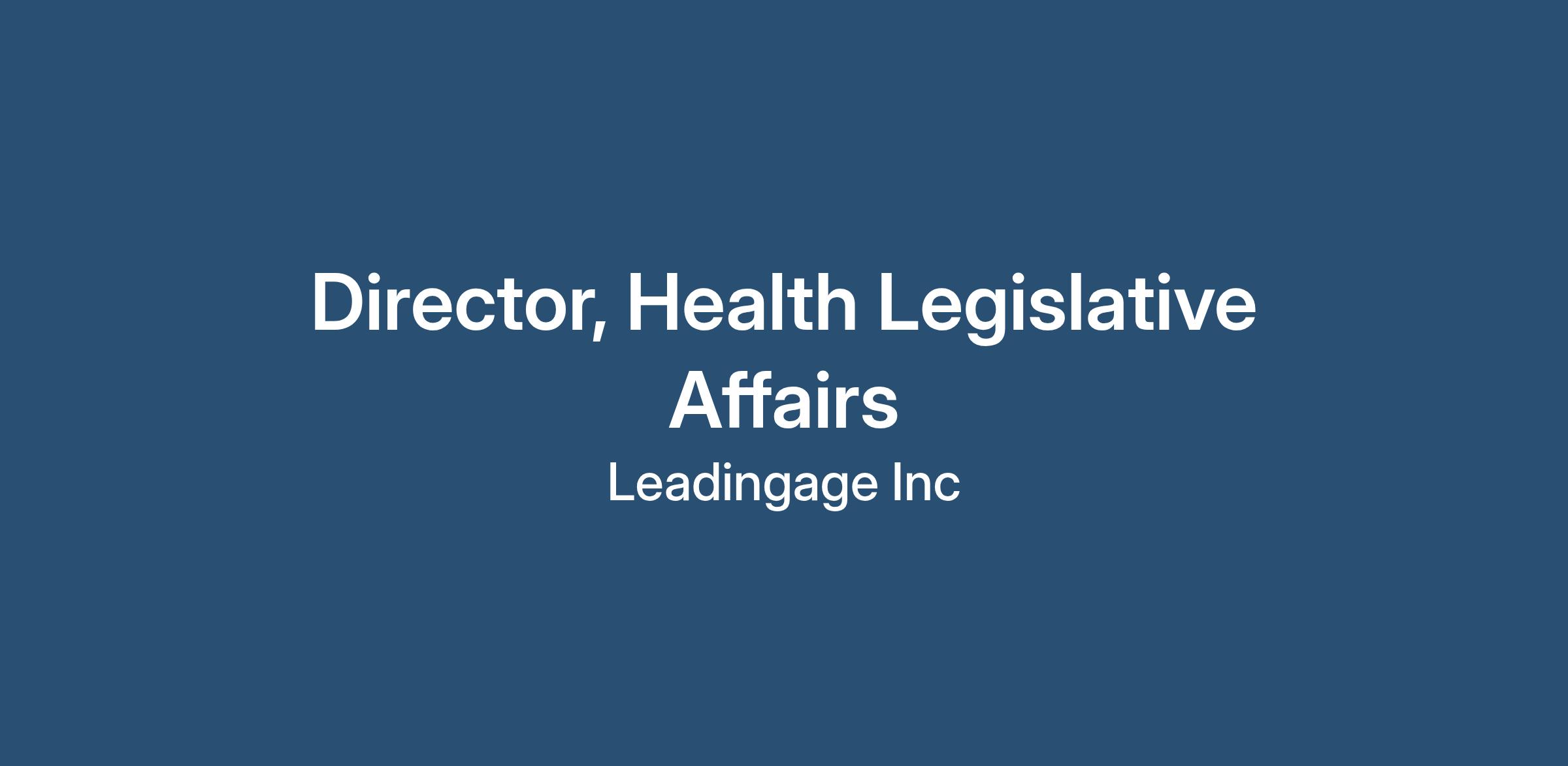 The Director for Health Legislative Affairs works with the Vice President, Health Policy to carry out legislative affairs strategies specific to health and long-term services and supports issues, primarily around nursing home and other residential healthcare settings, for the association and to implement LeadingAge’s related legislative agenda. The individual is a recognized content expert on, and works closely with LeadingAge’s other legislative staff, other organizations and coalitions concerned with issues affecting the LeadingAge membership to advance our agenda.