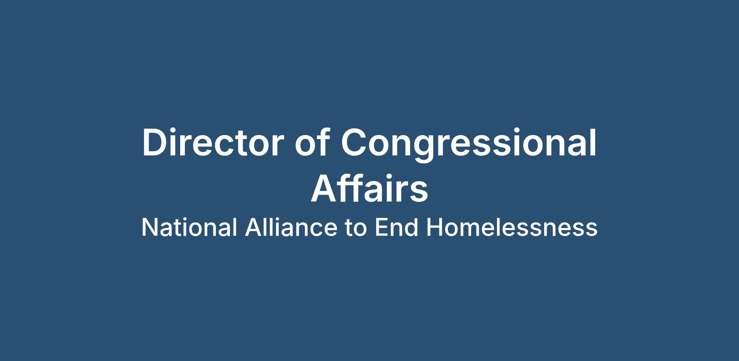 The Alliance is seeking a strategic, seasoned, and experienced Director of Congressional Affairs to serve as the primary liaison to Congress for the Alliance’s federal policy priorities, build and manage relationships with lawmakers and their staff, and develop and execute on a comprehensive Congressional strategy. This is a senior leadership role with significant responsibility for shaping national homelessness and housing policy.