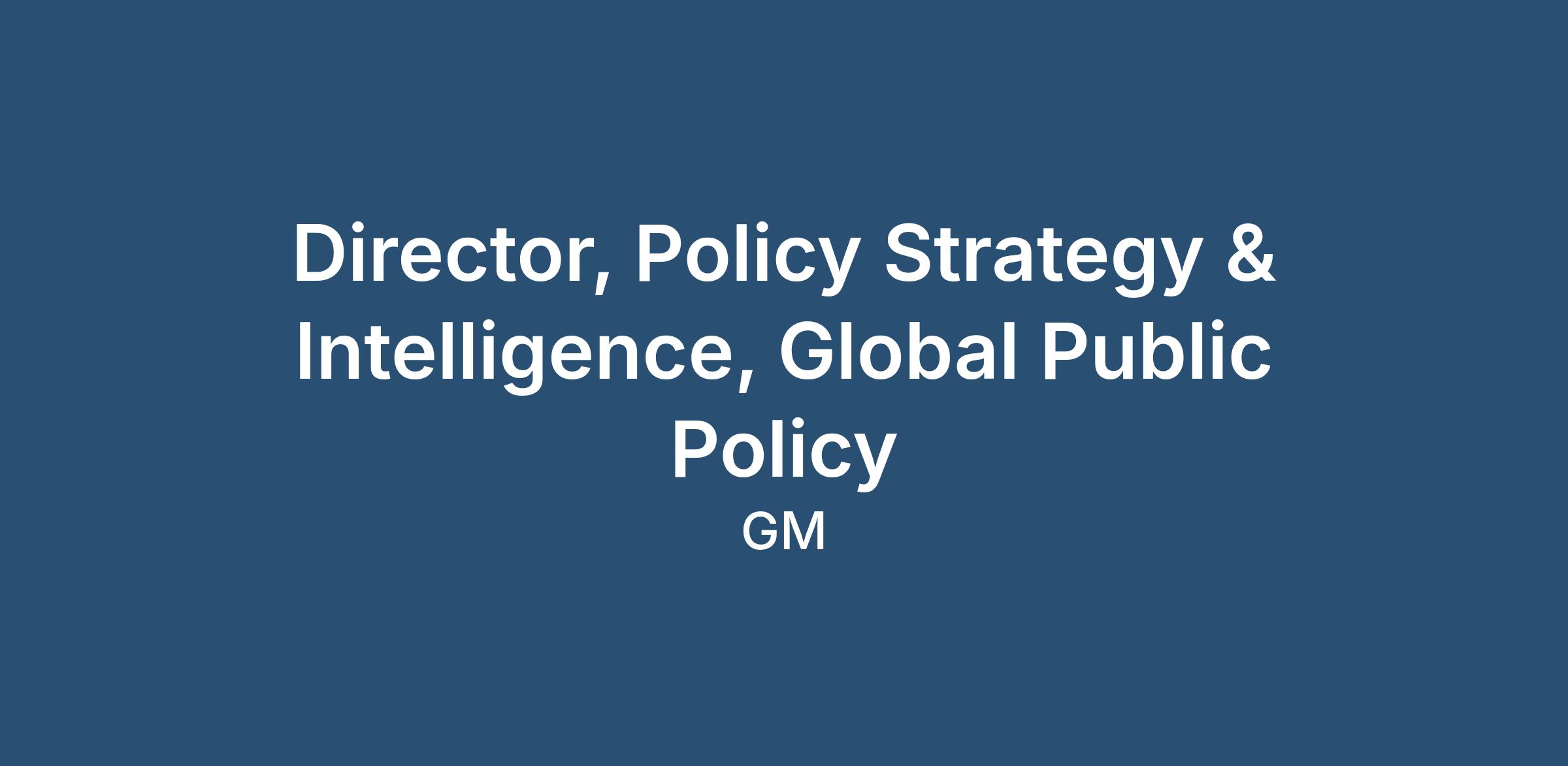 Reporting to the Executive Director, Global Strategic Initiatives, the Director will be primarily responsible for developing policy strategy options around key growth opportunities, risks, and trends; providing insights that enable Global Public Policy decision-making around and execution of strategy; and aligning policy strategy execution across functional elements in Global Public Policy and the broader GM business.