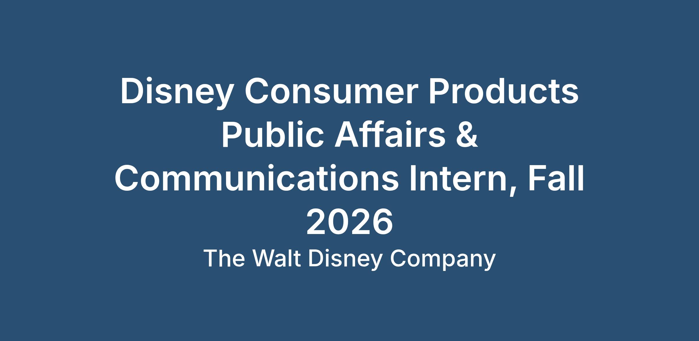 Disney Consumer Products Public Affairs & Communications Intern, Fall 2026