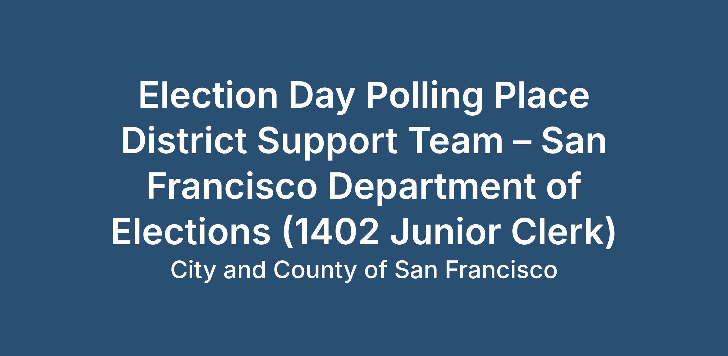 Travel within the city is required daily. Work location will also vary within the San Francisco area. Position will require standing for a prolonged period of time, driving to various sites, setting up and using various computer software and equipment (e.g. voting equipment, etc.), lifting and moving up to 50 pounds.