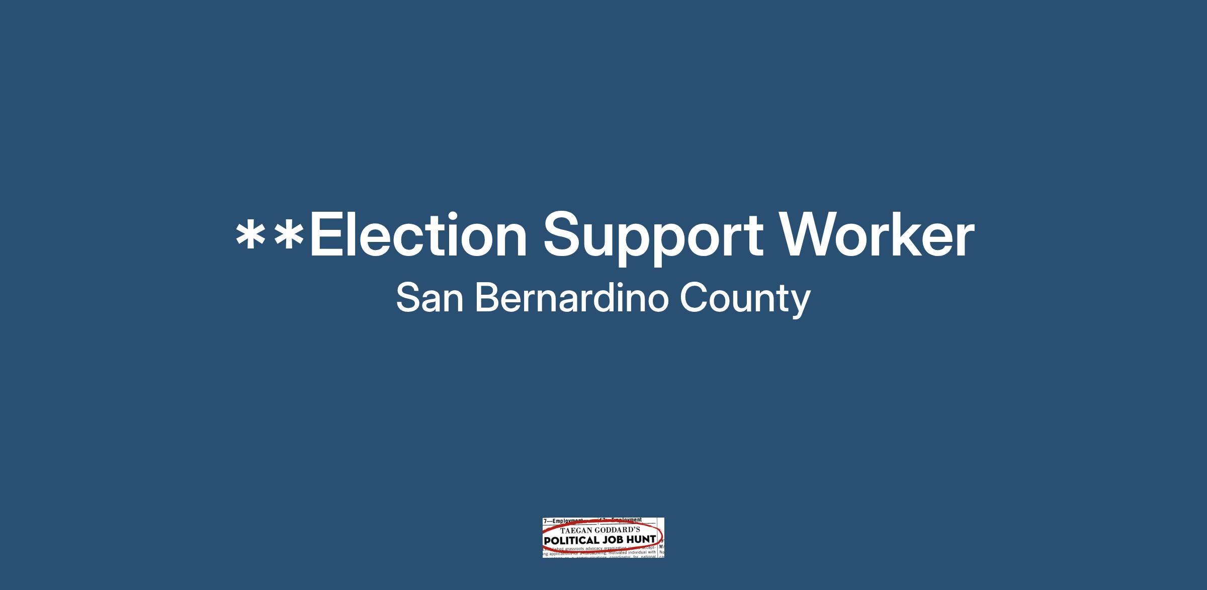 The San Bernardino County Registrar of Voters (ROV) is recruiting for temporary Election Support Workers who will support the Administration Division.