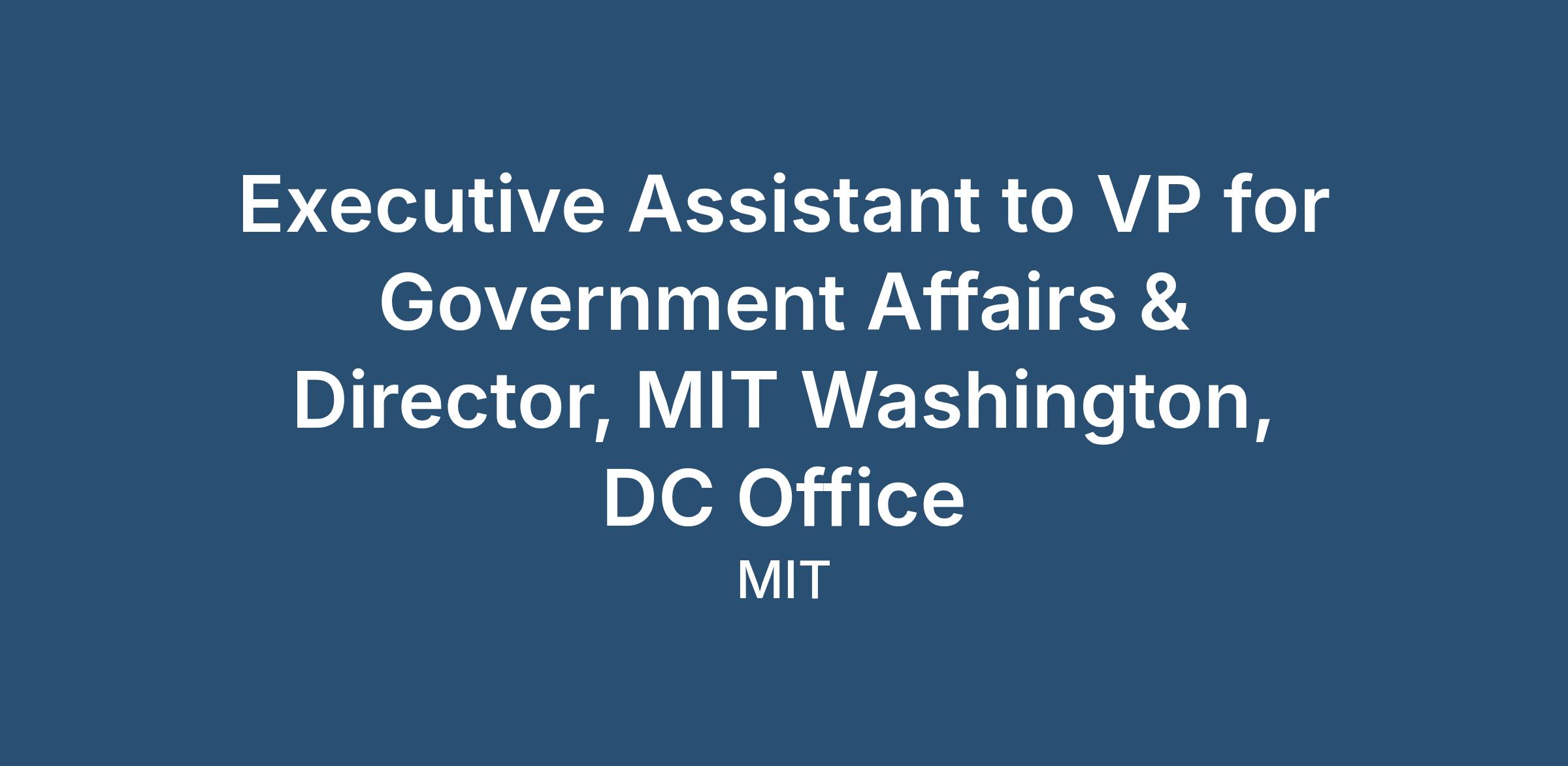 Executive Assistant to VP for Government Affairs & Director, MIT Washington, DC Office