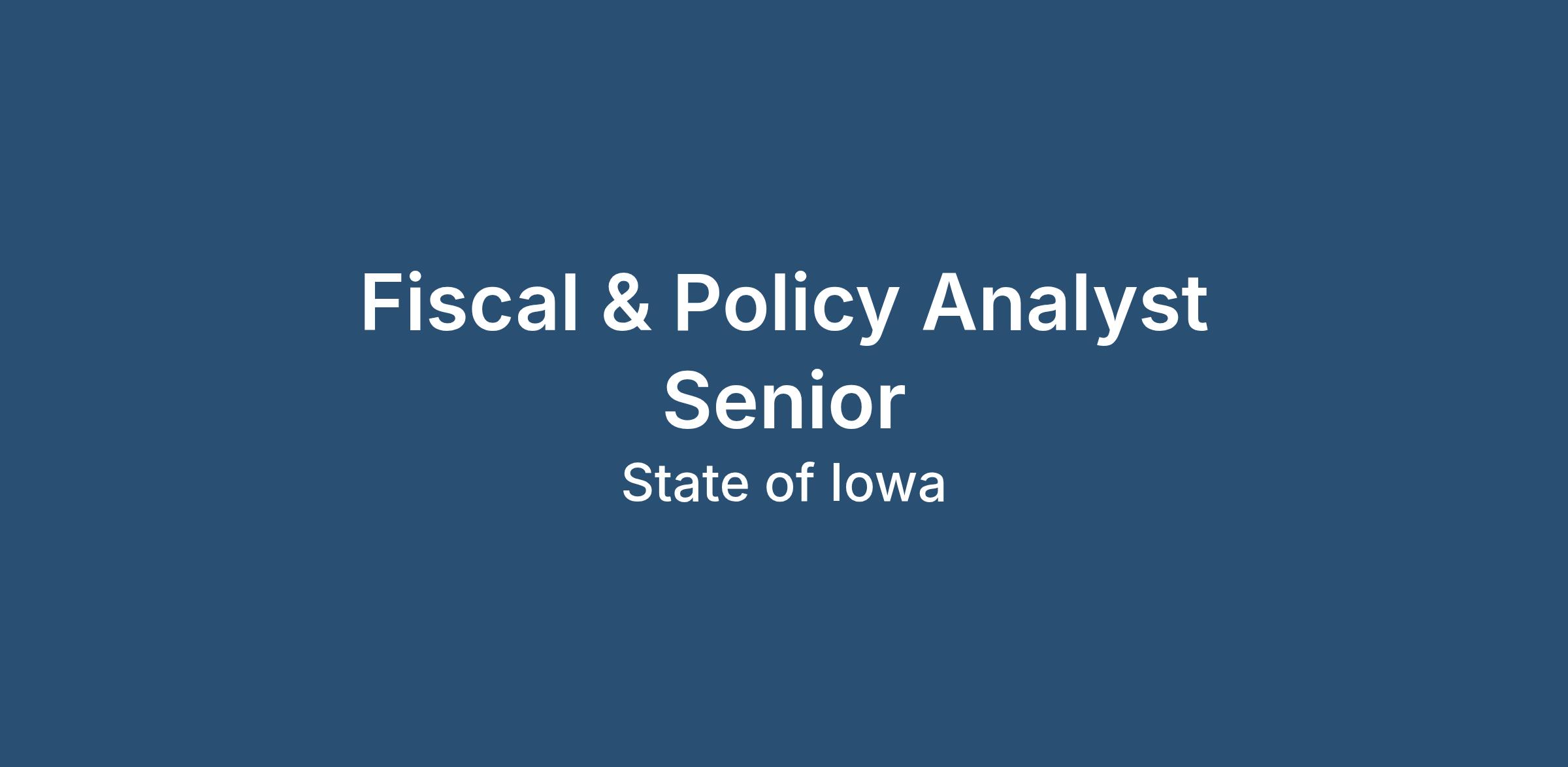 Fiscal & Policy Analyst Senior