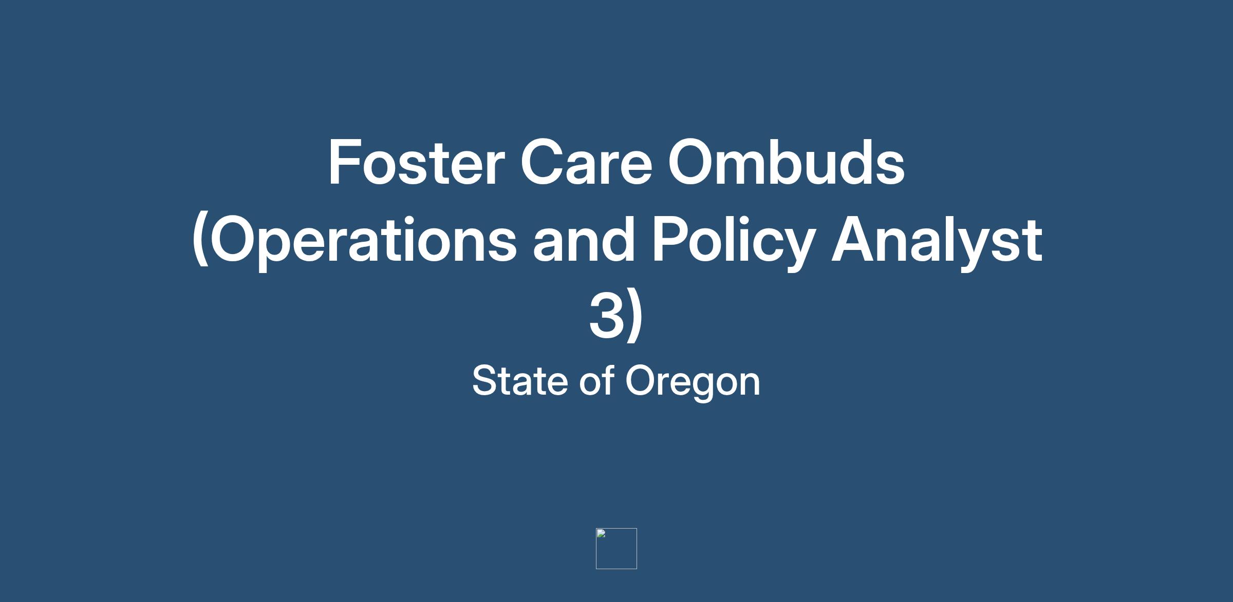 Opportunity Awaits, Apply Today! We're in search of a skilled professional to take on a key role in our team as the Foster Care Ombudsman (Ombuds), Operations and Policy Analyst 3 for the Governor’s Advocacy Office (GAO), within the Oregon Department of Human Services (ODHS). In this role, you will be responsible for operating a telephone line that is available to children, youth, and adults with experience in substitute care with a foster parent, a child caring agency, or an independent residential facility