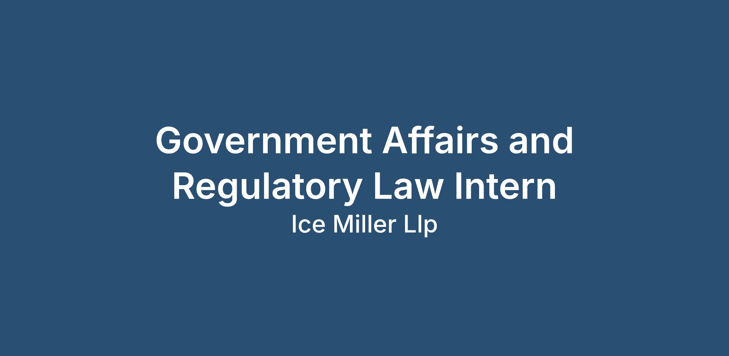 Ice Miller is seeking an intern for the Government Affairs & Regulatory Law (GARL) Group in Indianapolis beginning in late December 2026 through early May 2027. Successful candidates will assist the Firm’s registered state lobbyists and staff of the GARL Group during the 2027 legislative session of the Indiana General Assembly.