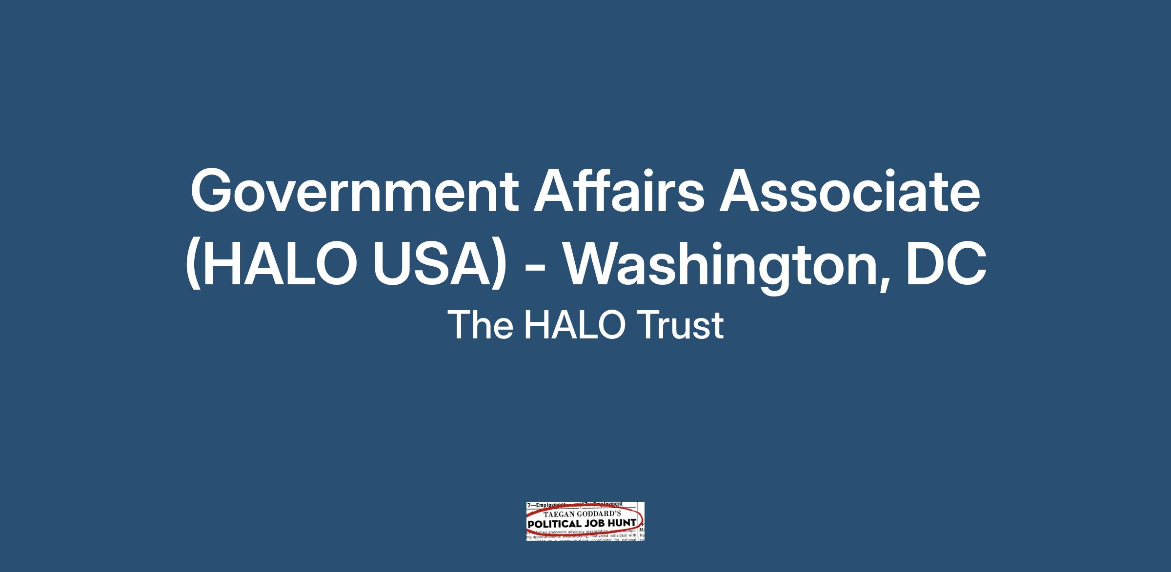 The HALO Trust (USA) Government Affairs Associate is a position that supports HALO USA’s Government Affairs team with their interaction with the US Government—primarily the State Department—and the wider HALO team spanning our UK and US headquarters and all our field programs worldwide.