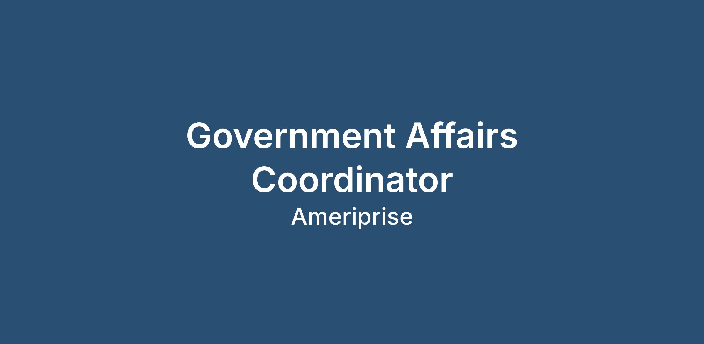 Ameriprise Financial is looking to add a Government Affairs Coordinator to the team! In this role, the coordinator will provide support to the Government Affairs team, the scope of which includes both state and federal government activities, with significant focus on state legislative monitoring and tracking for the enterprise.Key Responsibilities: