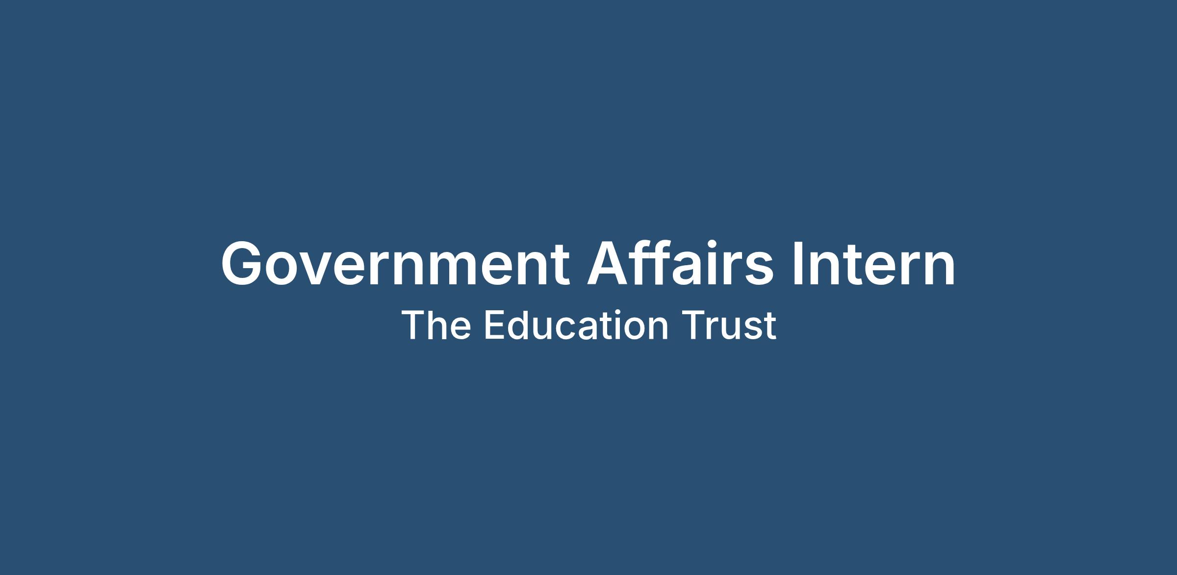 The Education Trust (EdTrust) seeks a Government Affairs (GA) Intern to join the organization’s GA team for Spring & Summer 2026. The GA Intern will assist the GA team in the development and execution of effective legislative strategies to advance EdTrust’s federal policy goals across early childhood, P-12, and higher education. The GA Intern will accompany the GA team in meetings with partner organizations, Congress, the Department of Education, the White House, and other federal actors, and will be expected to stay abreast of activity in the federal education space.