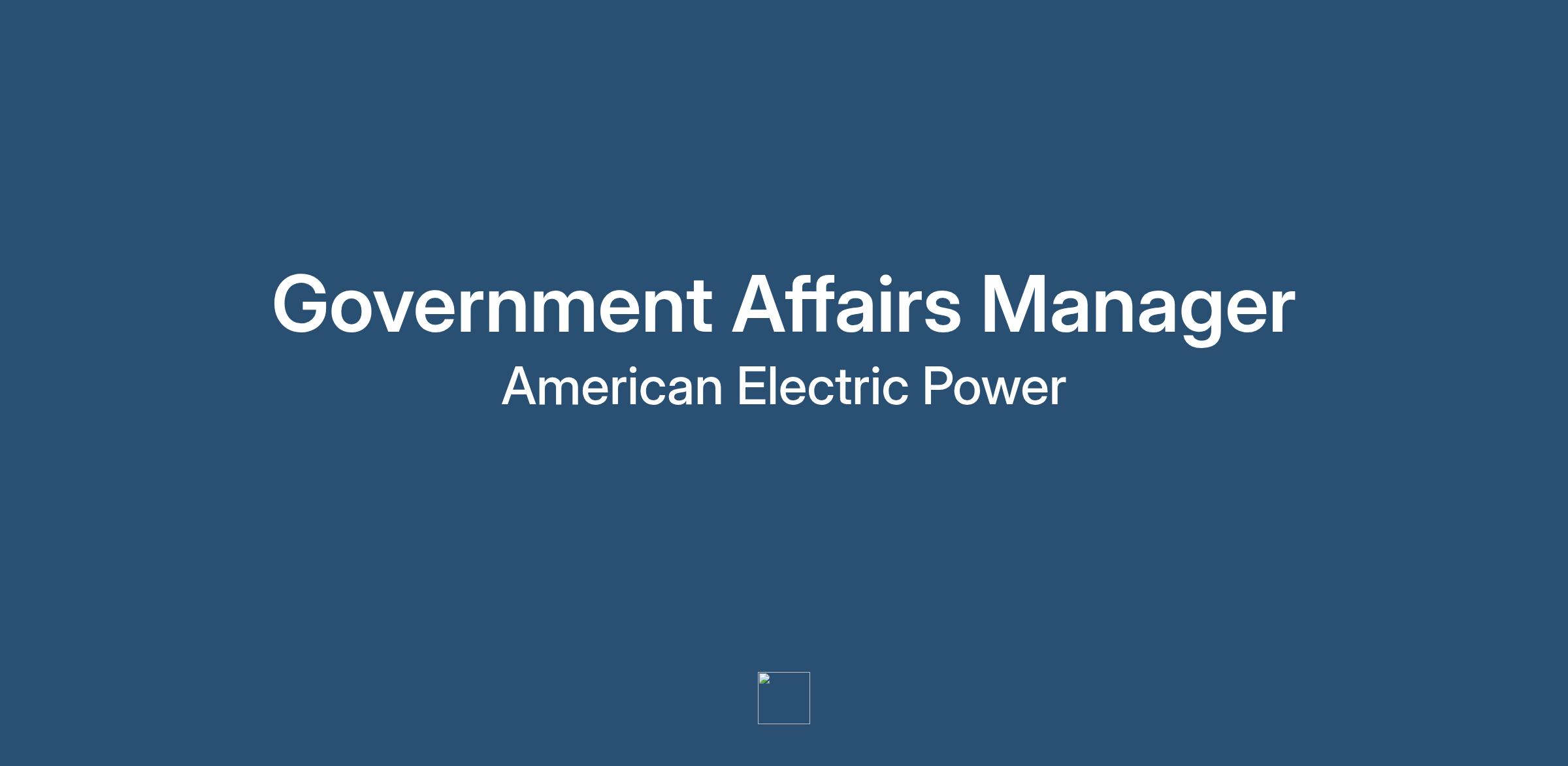 The Government Affairs Manager will report to the Managing Director, Government Affairs. This role will work directly with Members of the U.S. Congress and their staff to proactively promote policies that support American Electric Power (AEP) and its customers, and to defend against negatively impactful policies. The Manager will monitor and engage on legislative actions, committee hearings, congressional meetings, and other relevant activities to advance AEP’s federal policy priorities. They will coordinate with internal subject matter experts and external consultants to support advocacy efforts. The Manager will attend events associated with AEP’s political action committee and represent AEP at select trade associations and external forums. This position is based out of AEP’s Washington, DC office.Job Description