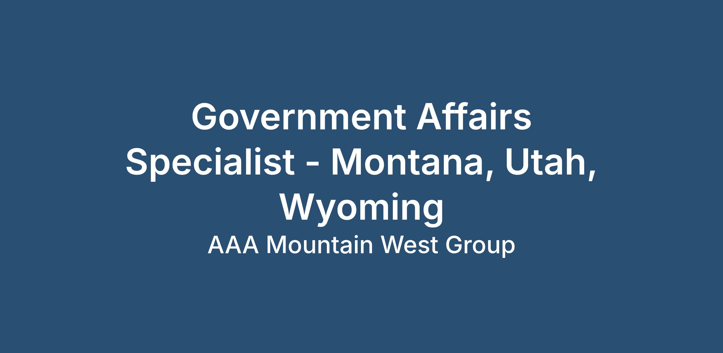 The Government Affairs Specialist will be a key player in shaping policy and advocating for the interests of the AAA Mountain West Group (MWG). AAA MWG serves over 6.7 million Members in Alaska, Arizona, Northern California, Nevada, Montana, Utah and Wyoming. This role will support advancing MWG’s public policy agenda in Montana, Utah, and Wyoming. As the government affairs contact for this region, you will help develop and implement advocacy strategies, effectively build relationships with government officials, and serve as a safety champion on critical issues such as road safety, emerging vehicle technologies, and smart mobility.