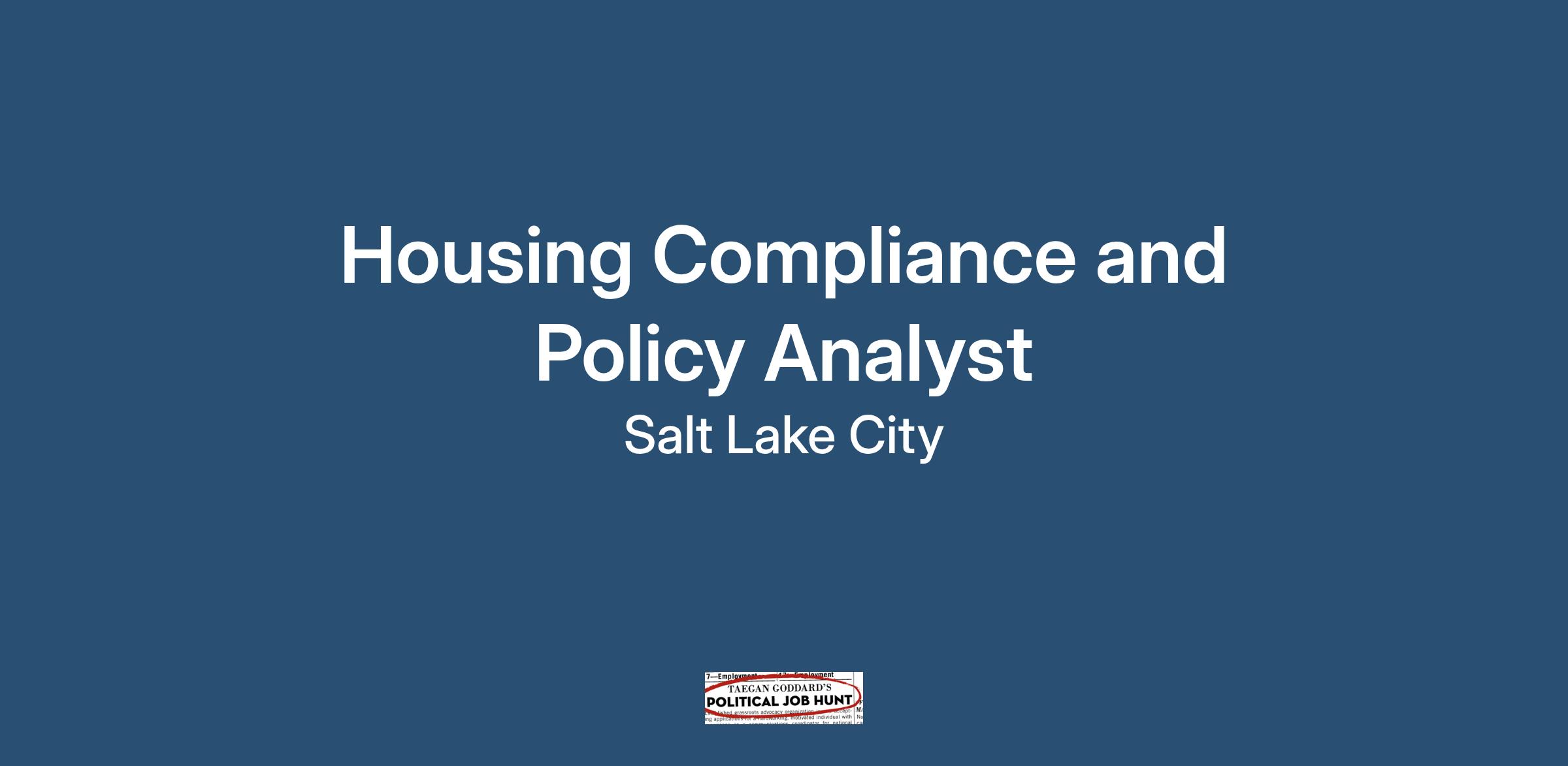 Housing Compliance and Policy AnalystJob Description: