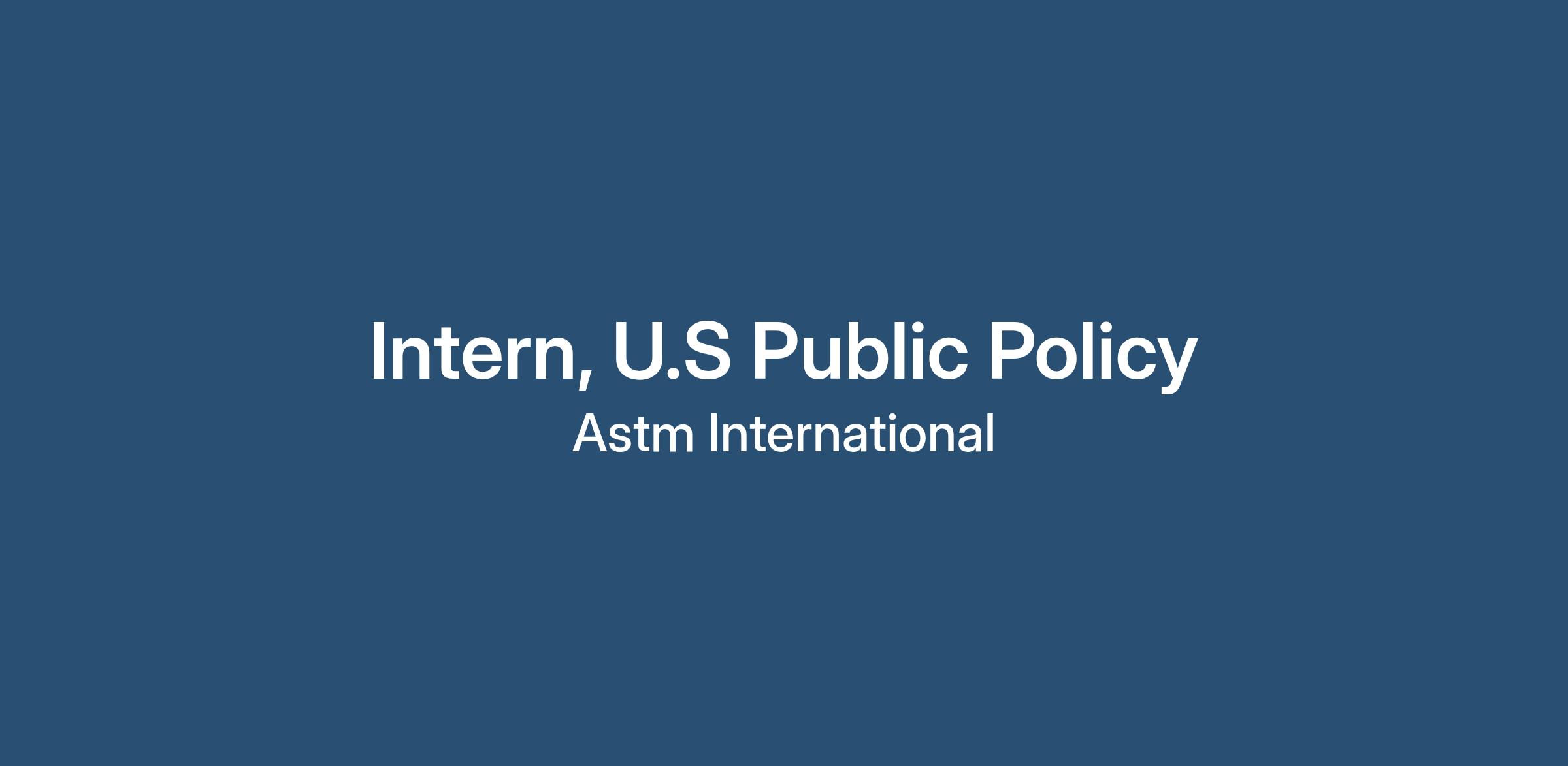 The U.S. Public Policy Intern at ASTM International will be a contributing member of the Global Policy team, with responsibilities to include researching, writing, and presenting policy initiatives on current issues important to the organization and policymakers. The intern will gain valuable experience working in a nonprofit, membership-based organization with a global reach.