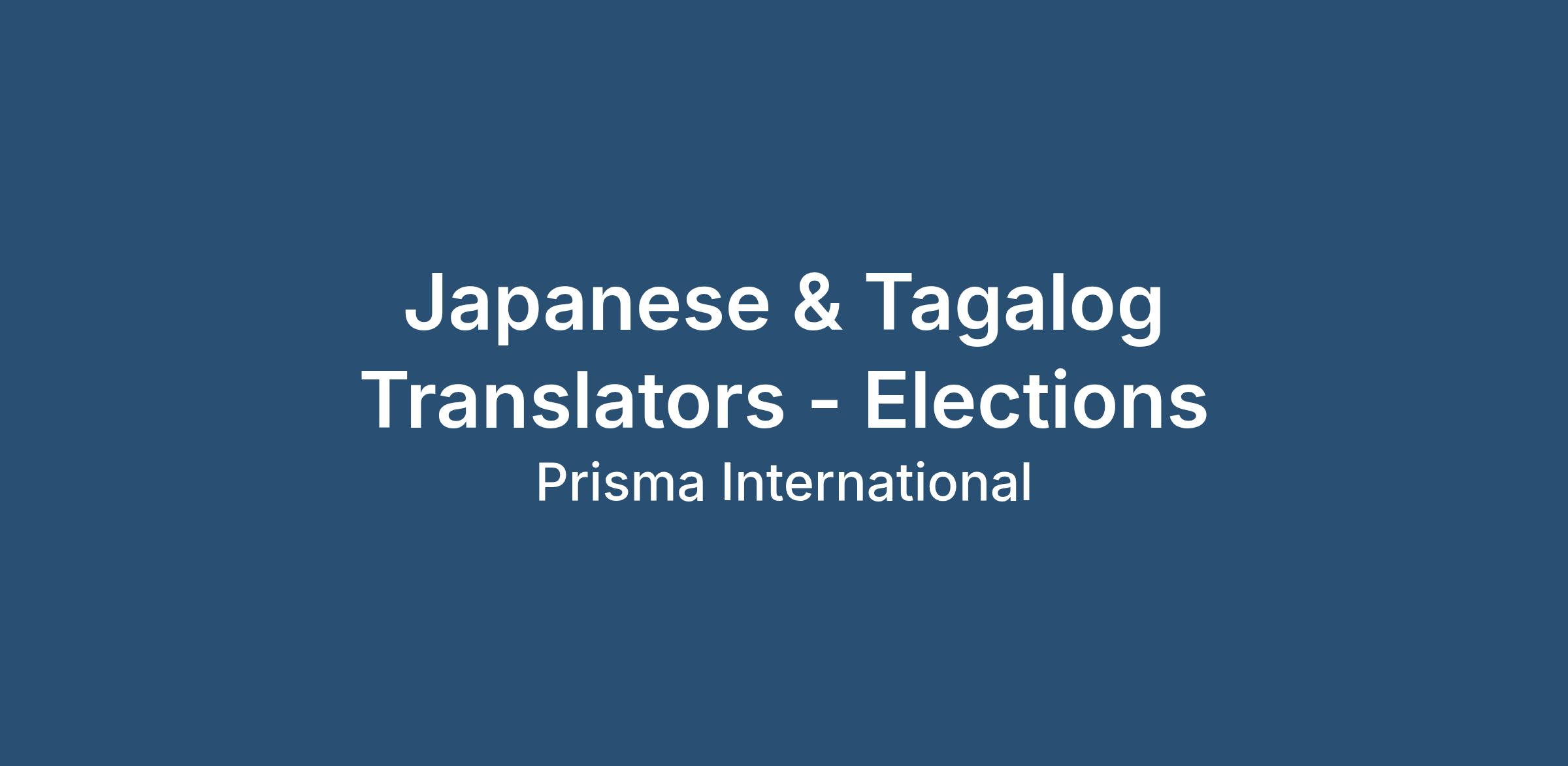 We are seeking experienced, professional JAPANESE and TAGALOG translators to join our exclusive ELECTIONS team. In this independent contractor role, you will provide high quality written translations between English and your native language. Successful applicants will have past Elections experience, exceptional time management skills and a commitment to linguistic excellence.