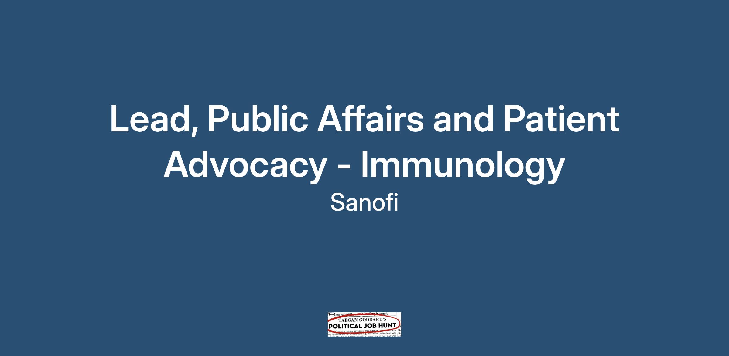 Job Title: Lead, Public Affairs and Patient Advocacy - Immunology