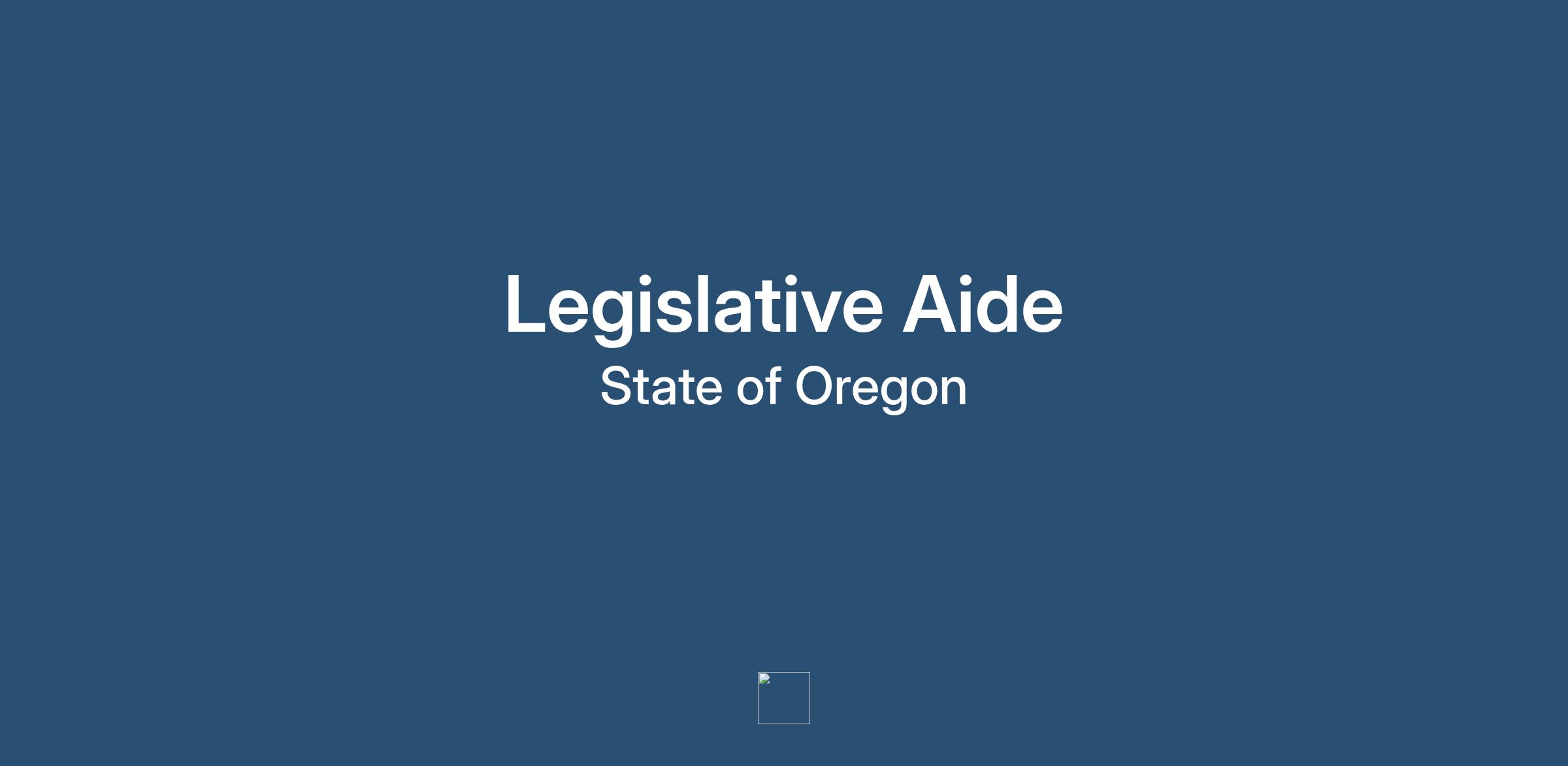 This is a limited duration, full-time salaried position beginning around January 1, 2026, with a likely end date of April 1, 2026, after the conclusion of the 2026 Legislative Session. During the 2026 legislative session this position will primarily be located in the Oregon State Capitol in Salem, depending on Capitol operational rules and the needs of the position.