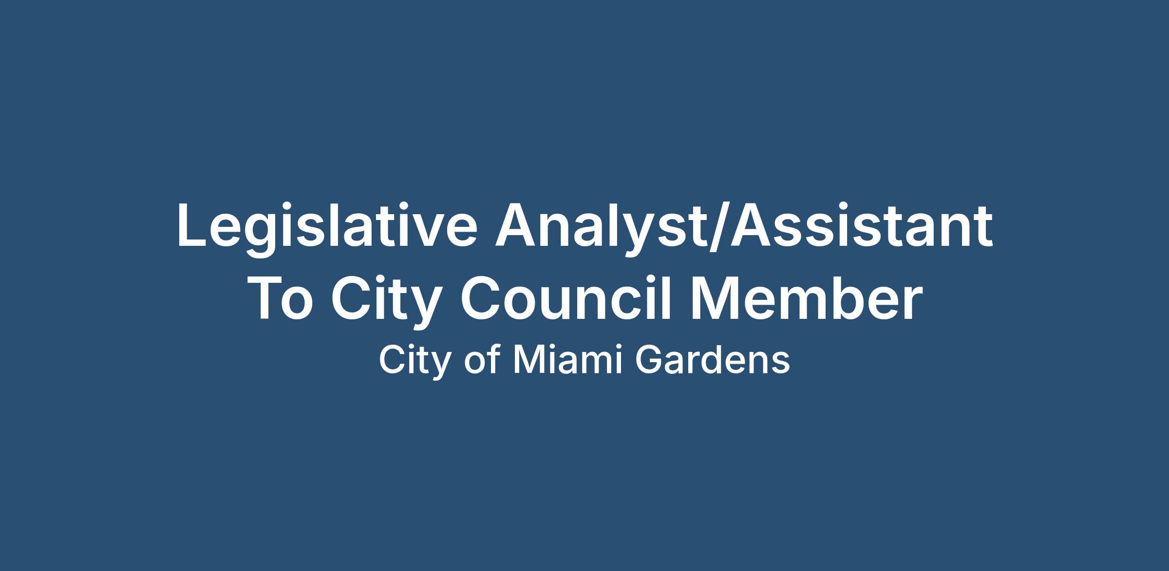 Legislative Analyst/Assistant To City Council Member