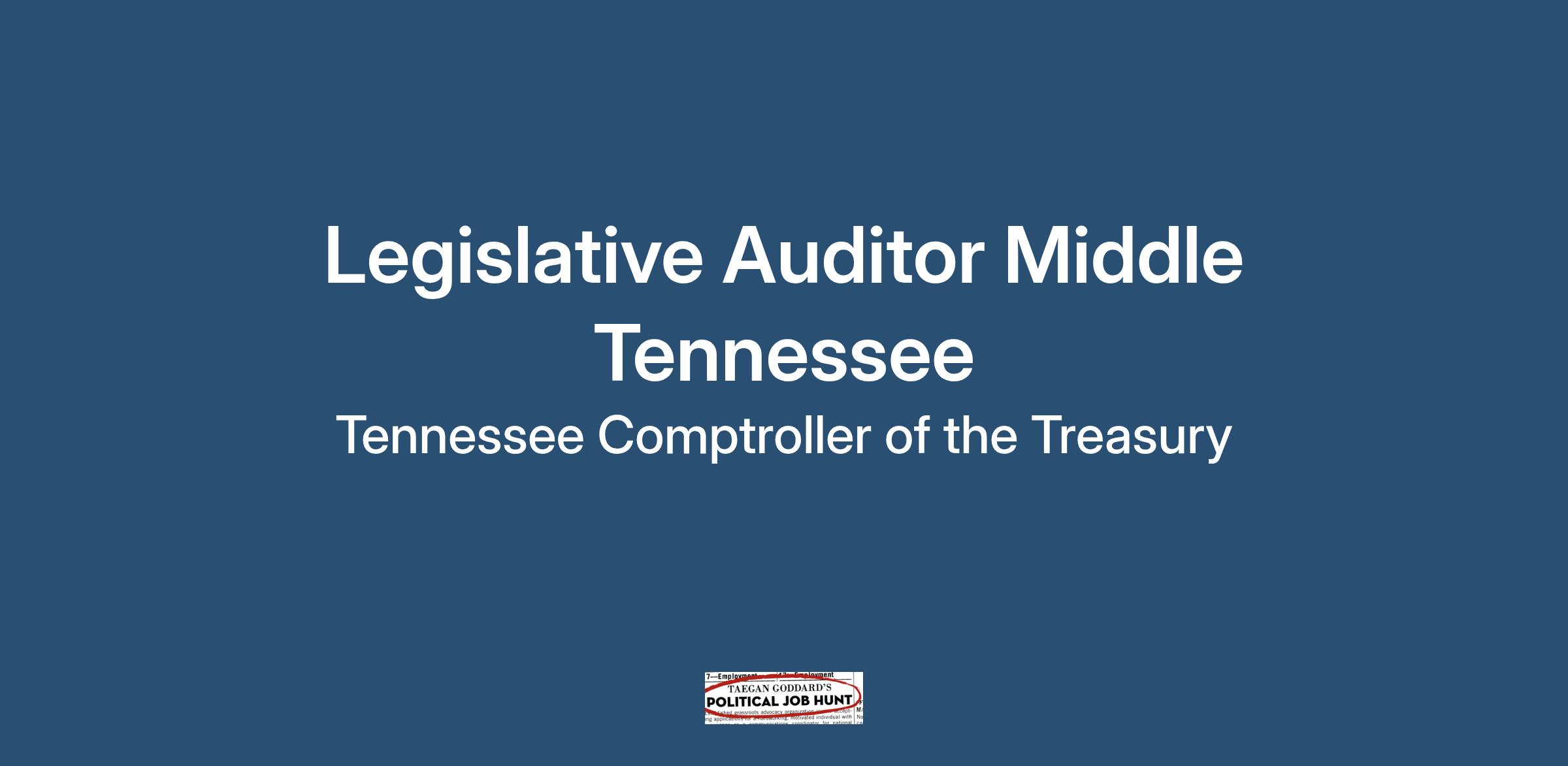 Legislative Auditor: Middle Tennessee This position will be located in the Middle region of Tennessee. This includes Cheatham, Robertson, and Sumner counties.