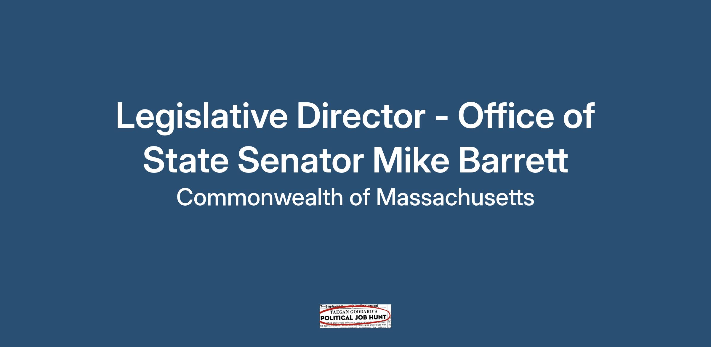 Sen. Barrett seeks a legislative director who will report directly to the Chief of Staff (COS) and work collaboratively with other staff members. This is a hybrid position. They will work several times each week in Sen. Barrett’s State House office (with flexible work-from-home options) and travel to the district as needed. The position will be integral to four major functions\: helping to shape and direct public policy, providing support for legislative work, working with citizen groups in the district, and addressing problems of individual constituents. Day to day, the policy advisor must be a jack of all trades and contribute to the smooth overall operation of the office. The legislative director relishes the interplay of politics and policy.