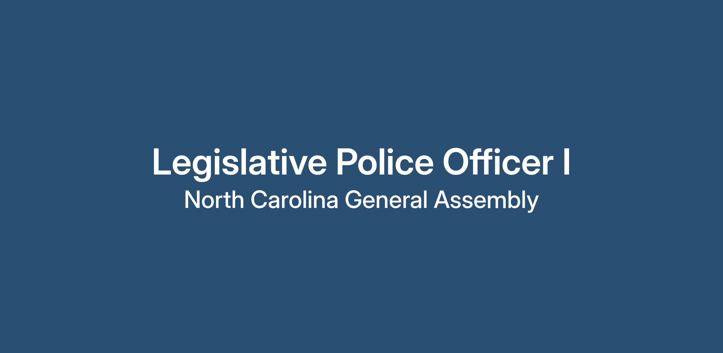 To apply for the Legislative Police Officer I position, submit the NC General Assembly application through the NC General Assembly website: https://careers.ncleg.net/.