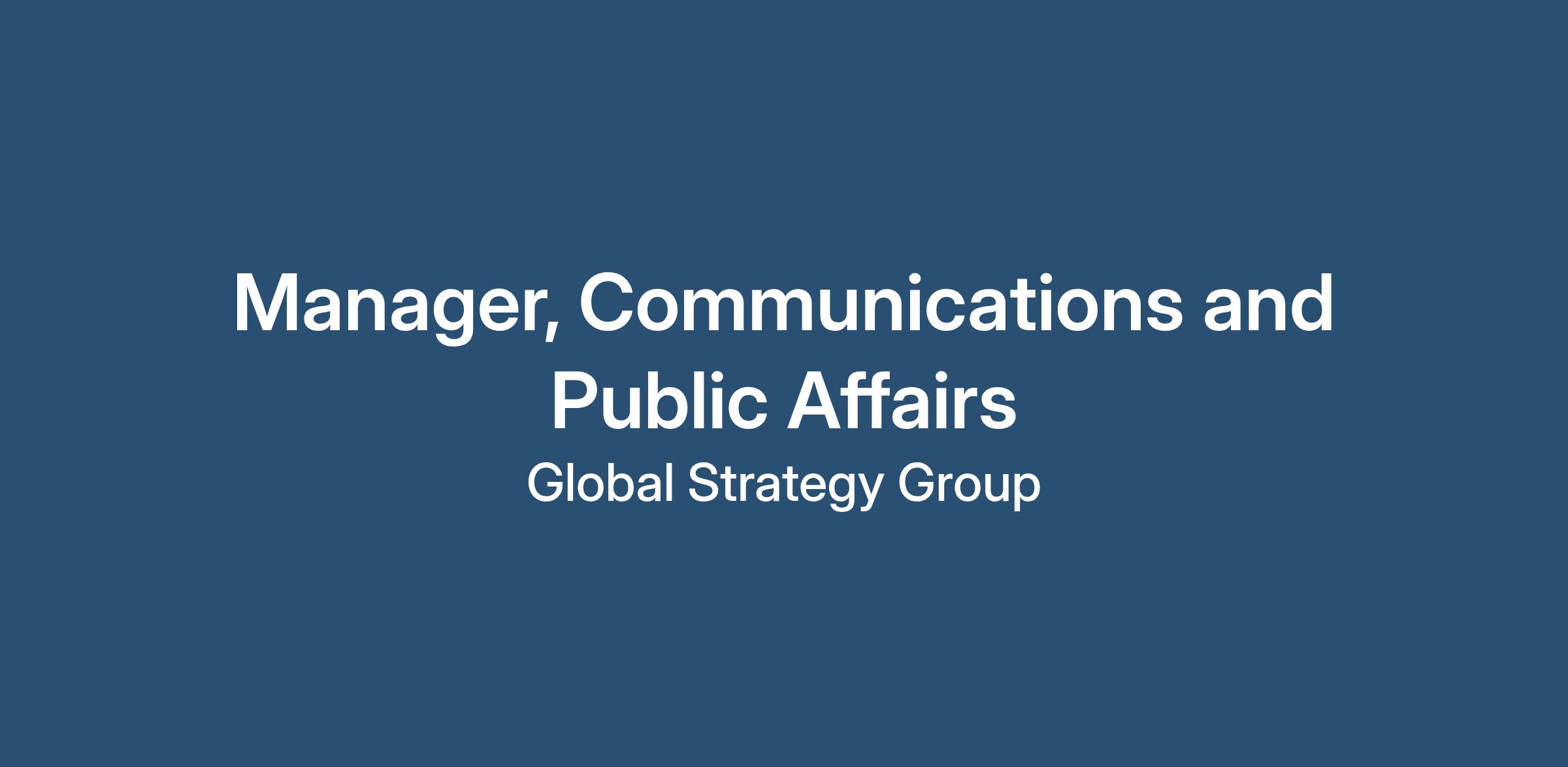Are you interested in communications, media relations, and writing? If so, Global Strategy Group is looking for you! We are seeking a Manager to join our growing Communications & Public Affairs Practice. Successful candidates will have a strong interest in working with clients in the public sector as well a desire and ability to work in a fast-paced, dynamic, and demanding environment.