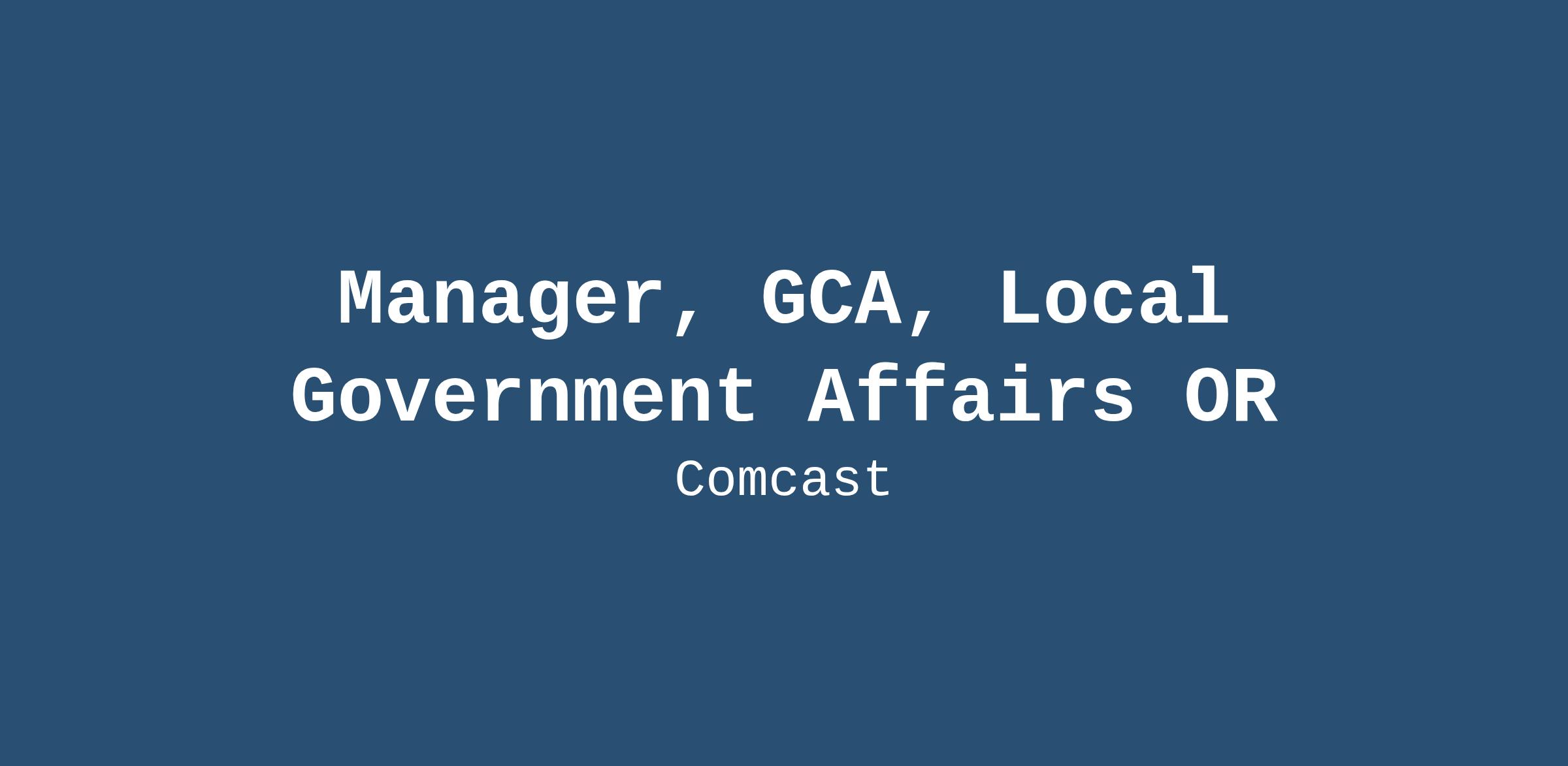 Responsible for managing the daily activities of the Government Regulatory Affairs department at the state, region, or division level. Assists with local regulatory, franchising and public policy matters for assigned geographic area. Implements legislative strategies, monitors legislation and coordinates state association management. May manage a team including exempt and non–exempt employees. Provides subject matter guidance to employees as required. Develops processes and procedures to drive department efficiencies. Assists in development and meeting of departmental budget.Job Description