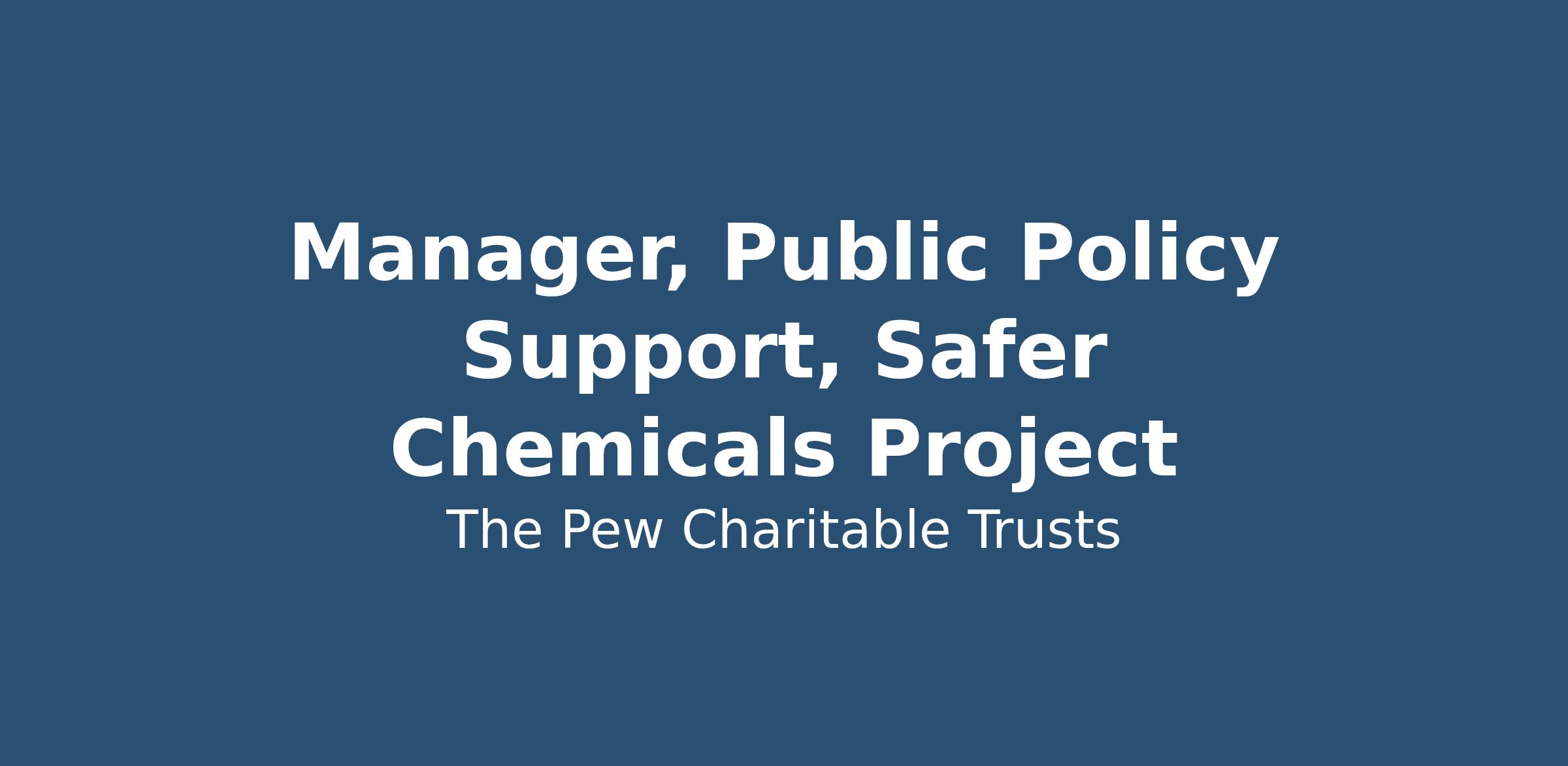The Manager, Public Policy, Safer Chemicals Project, will report to the Project Director, Public Policy, and will lead a team that provides coordination and support to the state and federal policy teams that support agenda planning, research support, meeting materials development, and campaign deliverables and milestones tracking. The Manager will work closely with other policy staff, as well as partner closely with the cross-cutting team within the project and relevant program department teams and operations units as relevant.