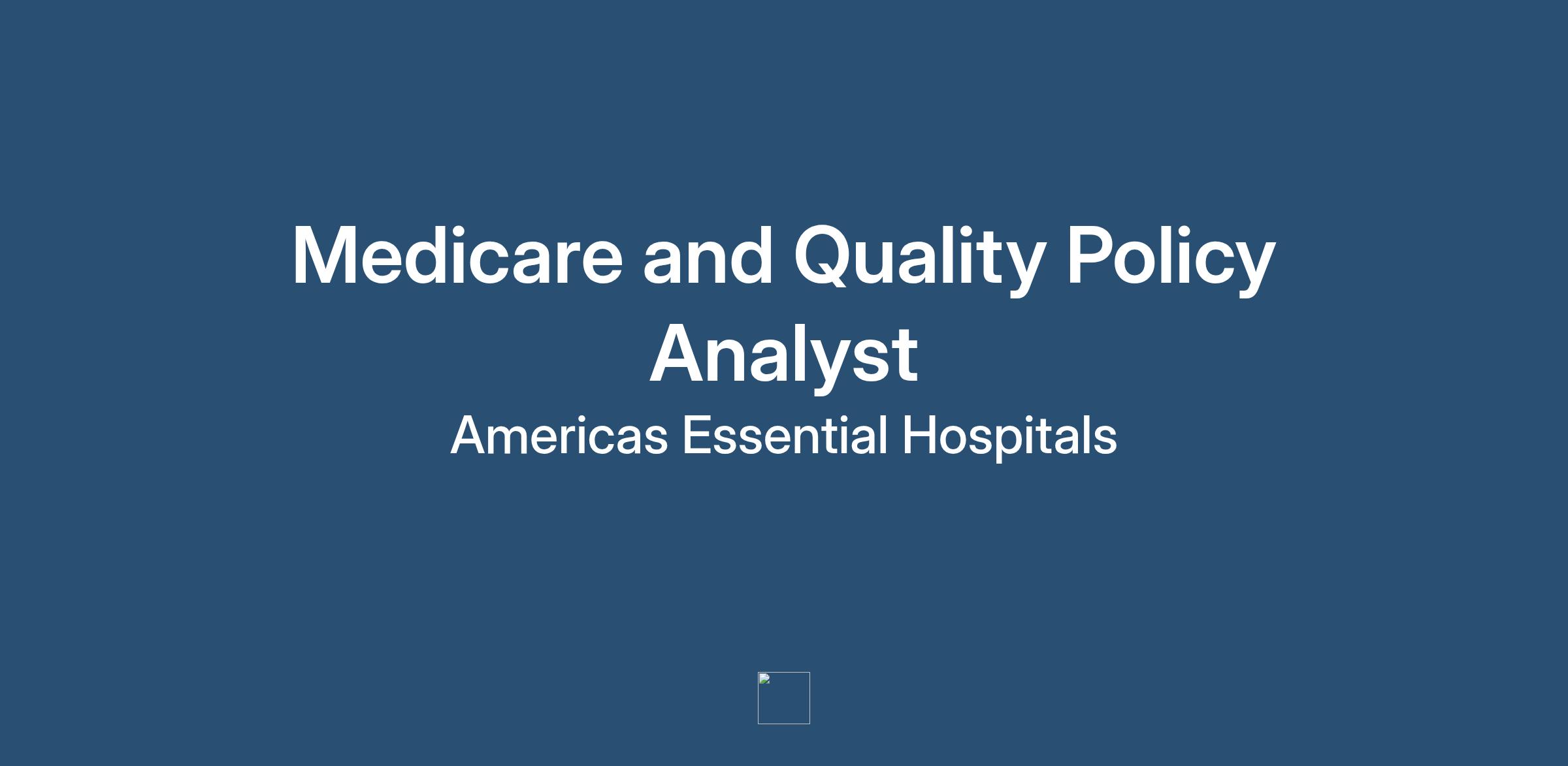 The Medicare and Quality Policy Analyst serves as a trusted subject matter expert and advisor regarding complex public policy developments that affect essential hospitals. The Medicare and Quality Policy Analyst will be responsible for a portfolio that includes Medicare quality measures, alternative payment models, and policies to reduce regulatory burden for hospitals.