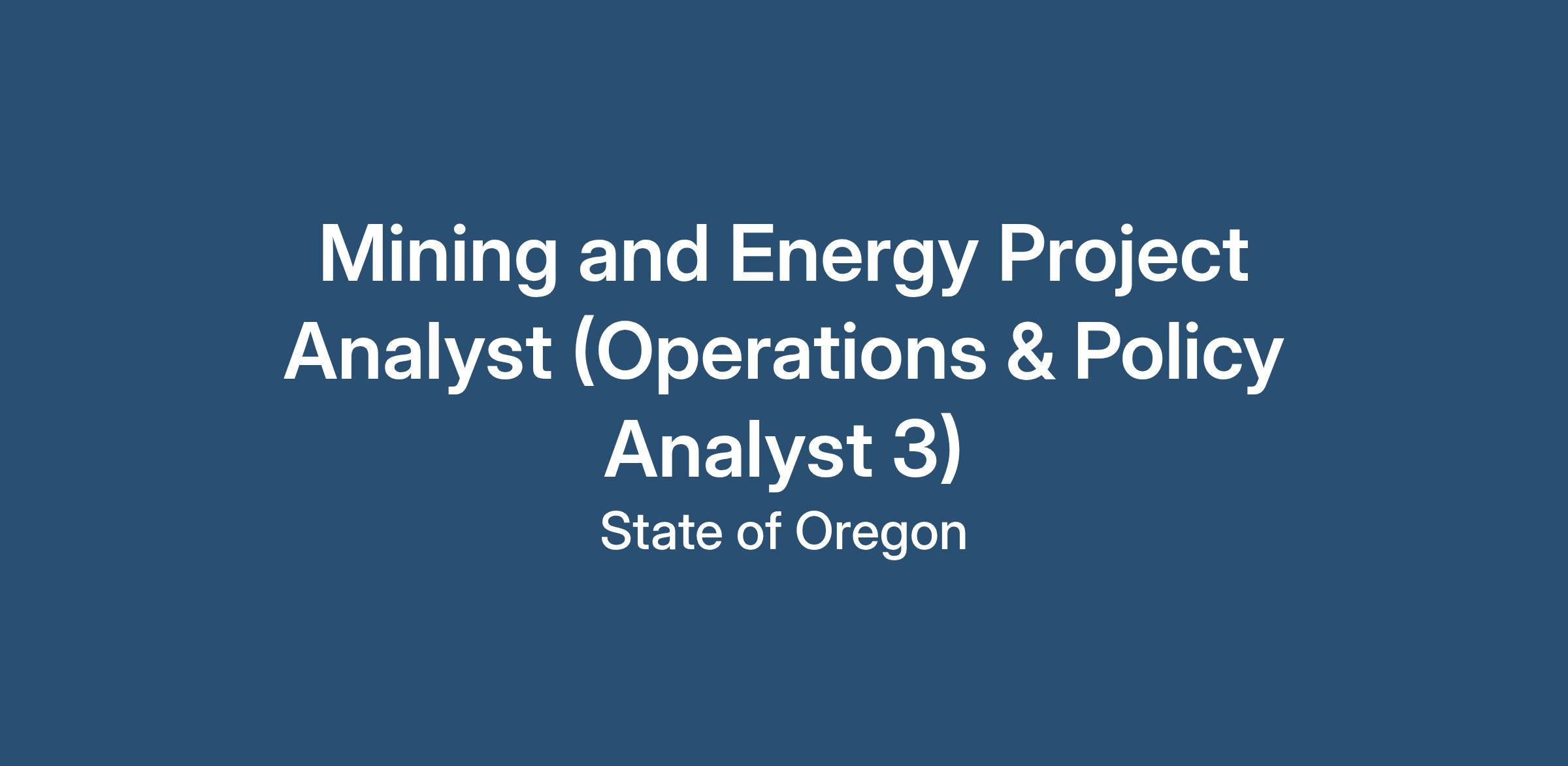 The Oregon Department of Environmental Quality has a full-time opportunity available for a Mining and Energy Project Analyst (Operations & Policy Analyst 3) in Bend, Klamath Falls, Pendleton, or The Dalles, Oregon (finalist may choose work location).